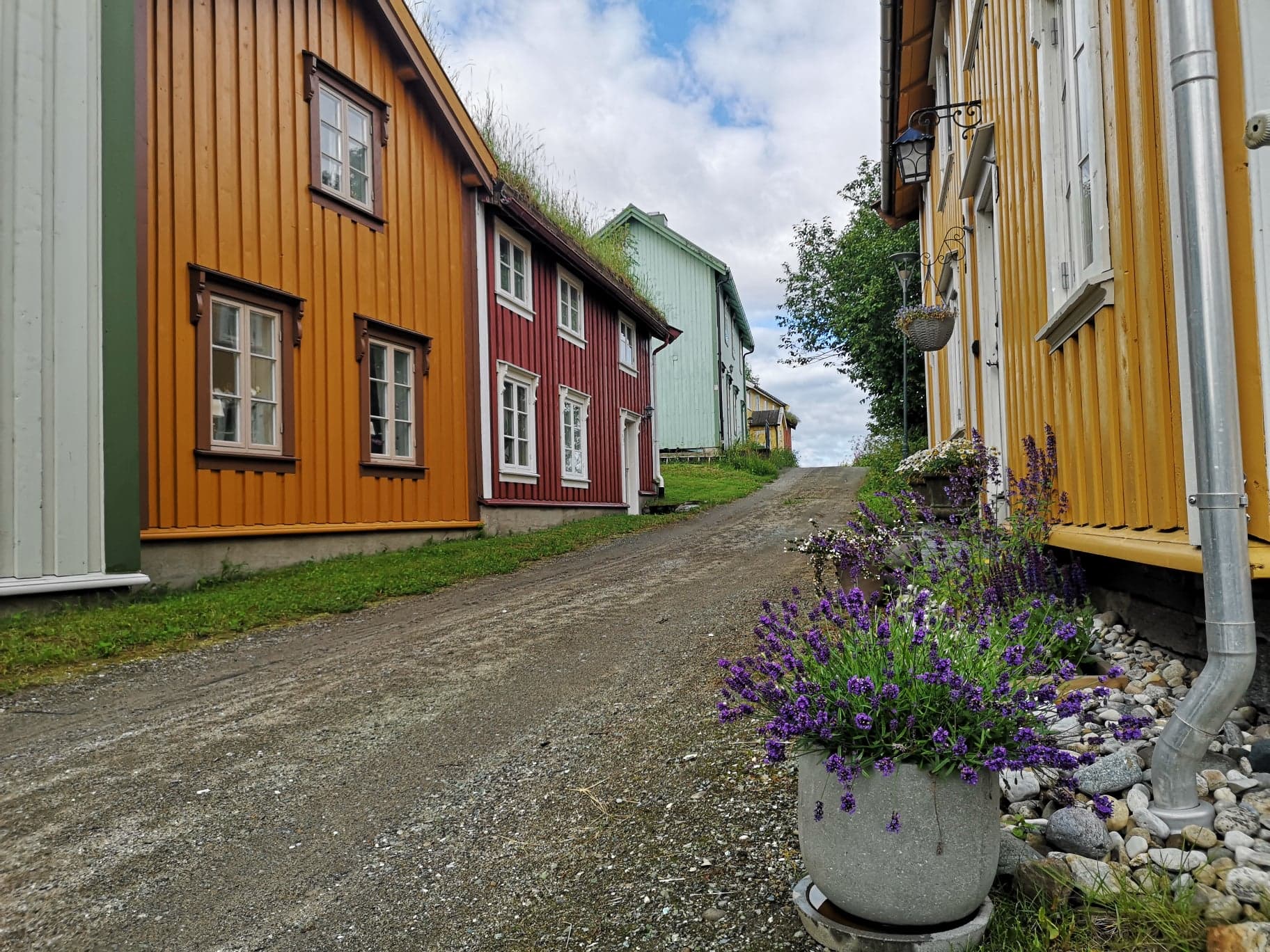 Vi fulgte promenaden noen hundre meter mot sentrum, hvor vi kom til en liten bydel med fargerike gamle hus. Moholmen er Mo sin lille gamleby, der husene er de siste restene av bebyggelsen før industrien tok over. Den lille bydelen med én hovedgate er fortsatt bebodd, men uten kafeer og andre turistfeller. Til gjengjeld er hagene fantastisk vakre, og mange har pyntet med gammeldagse gjenstander utenfor husene. Interessant nok er det bygget en moderne kopi av Moholmen noen hundre meter lengre sør langs vannkanten.
