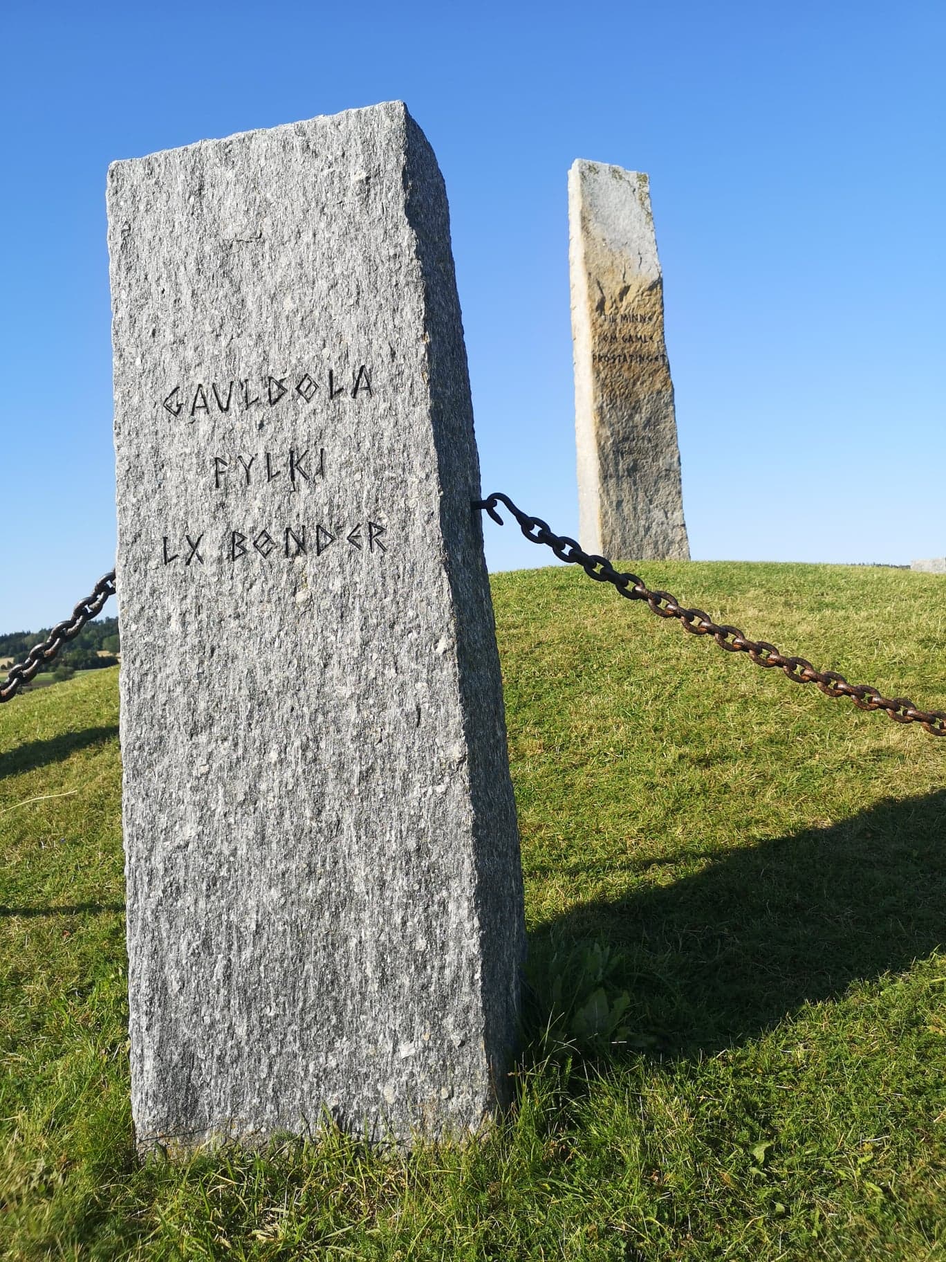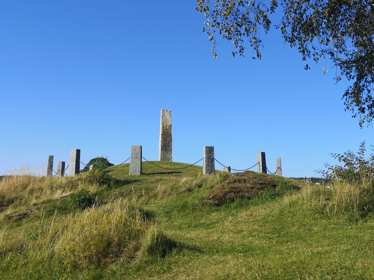 Rundt den store bautaen er det 12 små steiner som symboliserer alle de12 fylkene som møttes på det gamle Frostatinget.