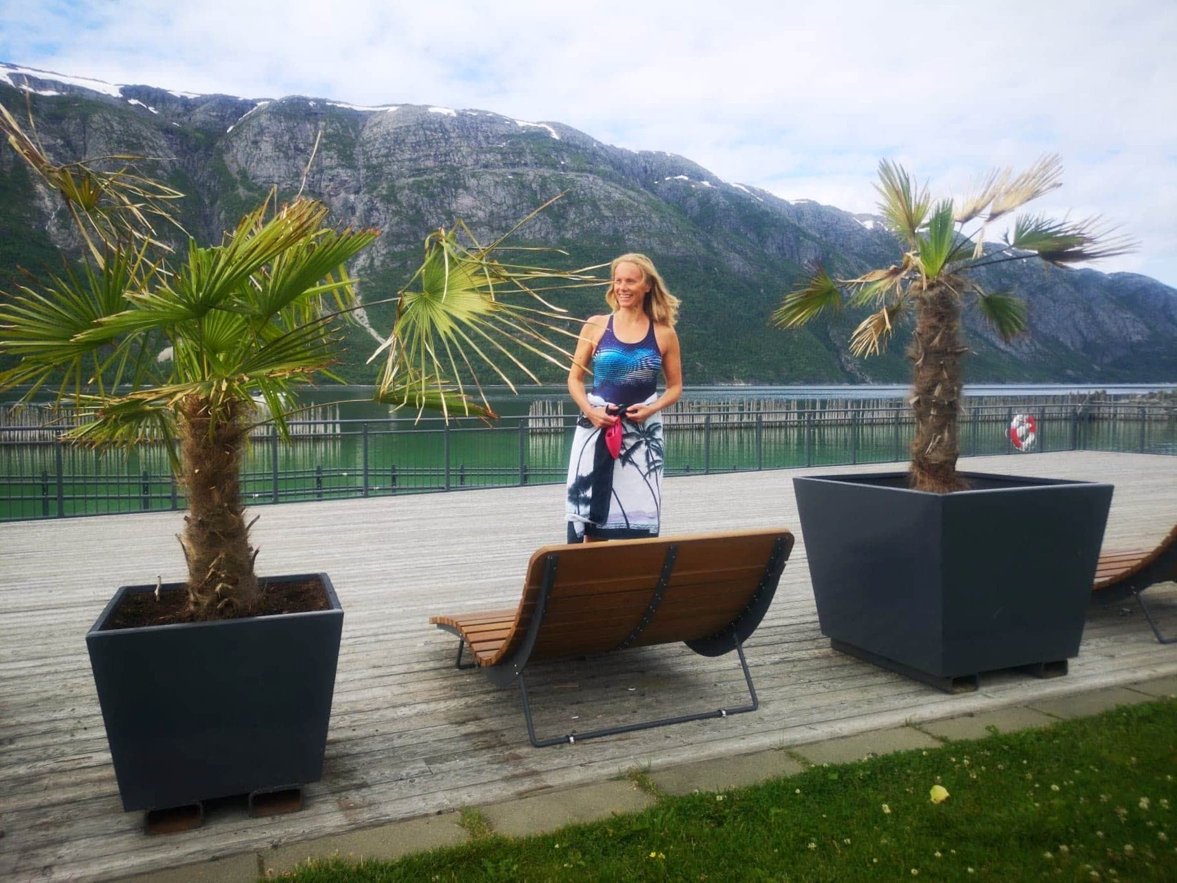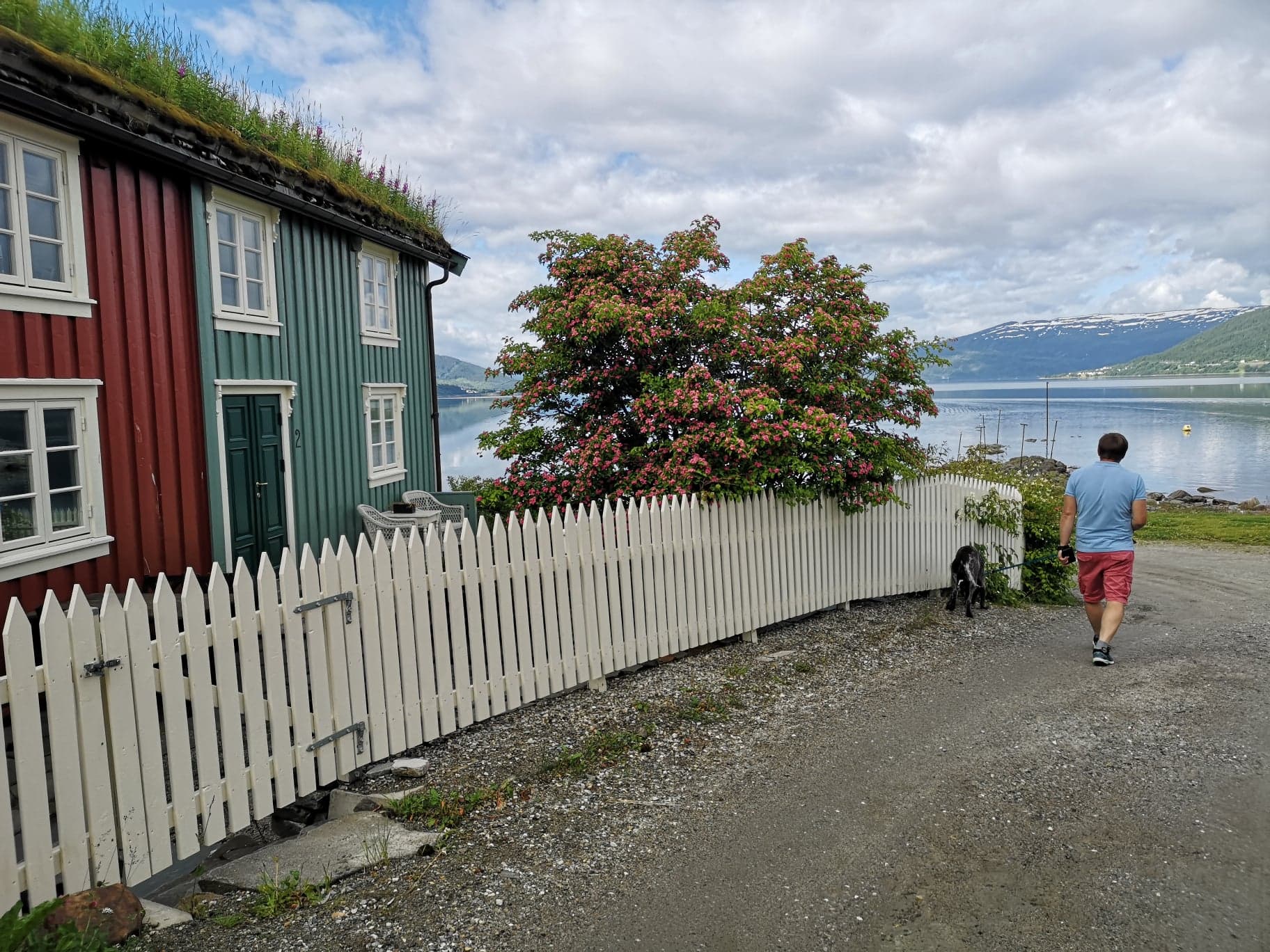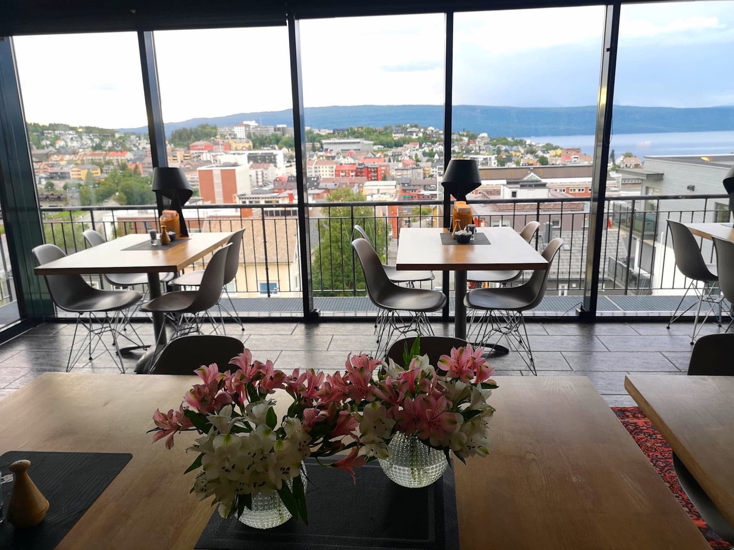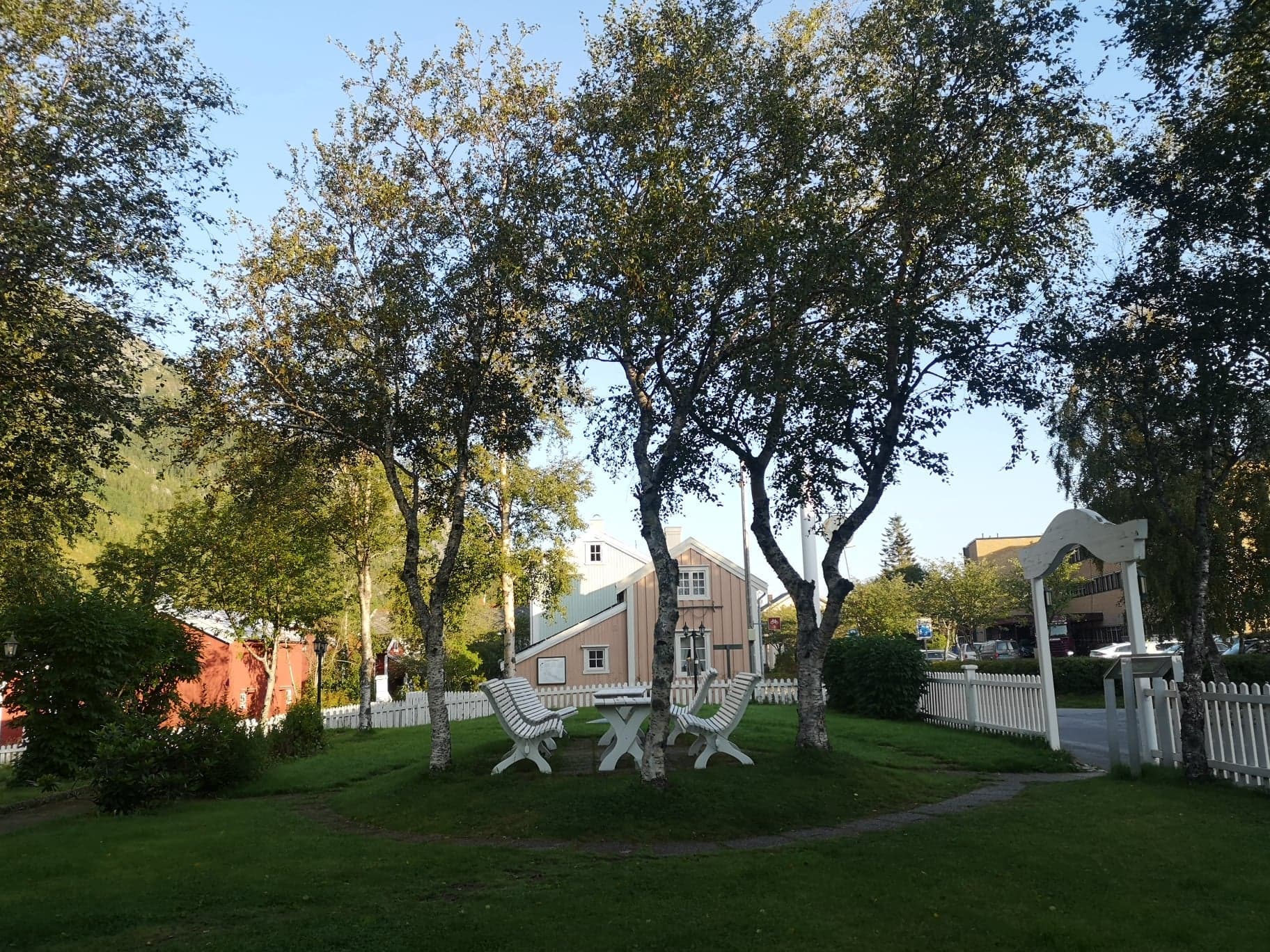 Vi fikk rom på hotell Fjordgården, som ligger kun to minutter fra E6, og samtidig rett ved havnepromenaden.