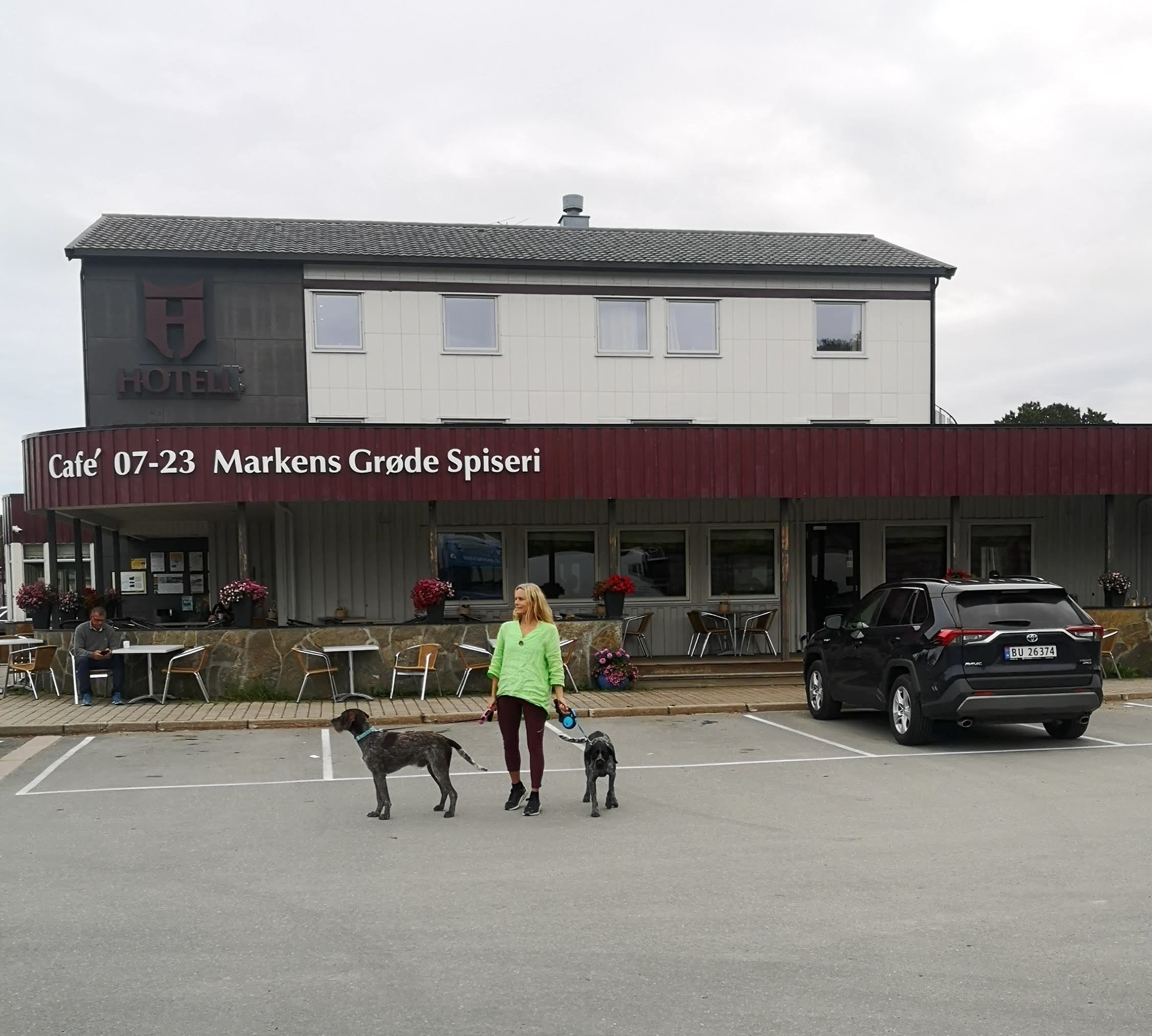 Siden klokka nærmet seg ni om kvelden og vi var slitne, spurte jeg om de hadde hunderom ledig. Det hadde de, så da ble det raskt avgjort at vi skulle tilbring natten her.