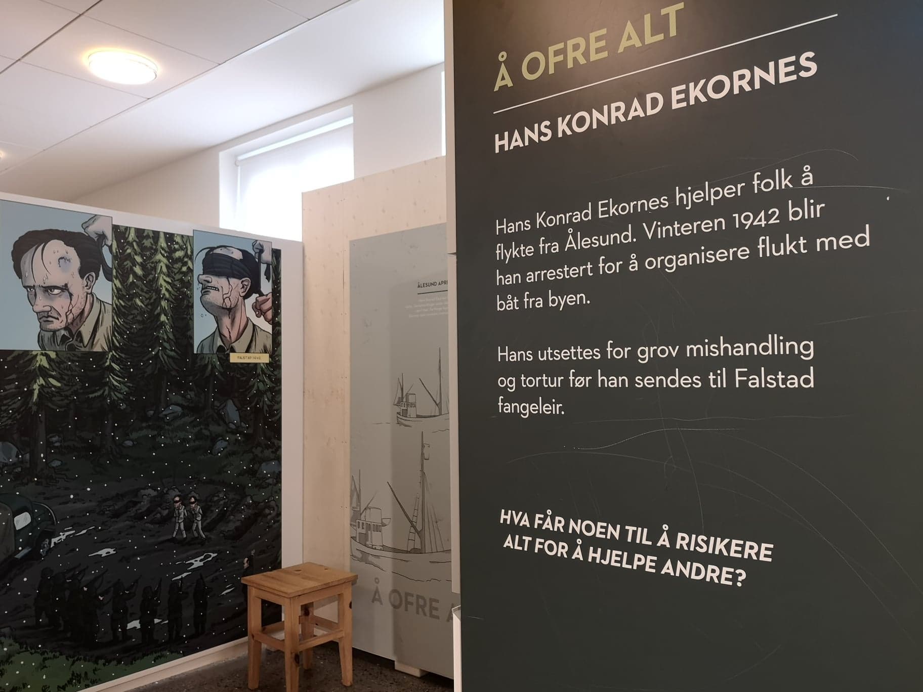 Det samme gjør historien om Hans Konrad Ekornes, som ble utsatt for grov mishandling og tortur for å ha hjulpet folk til å flykte fra Ålesund i 1942.