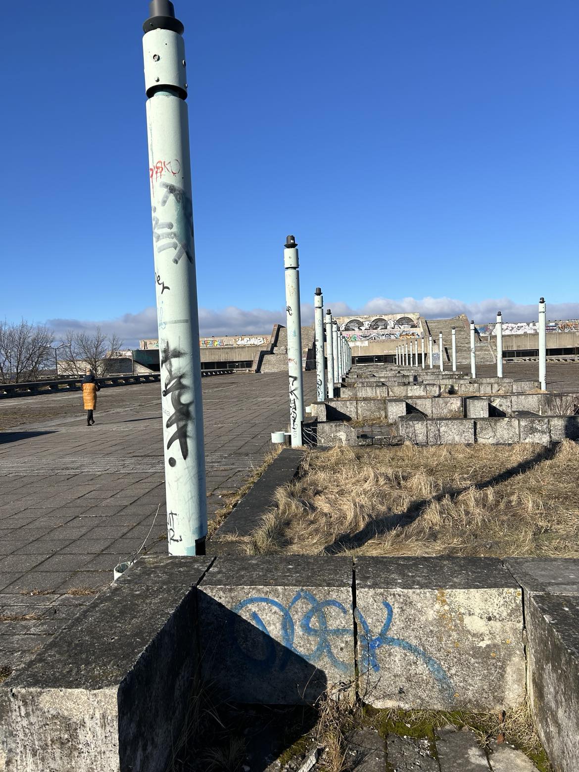 Følelsen av å stå oppå dette tilsynelatende øde, enorme bygget gir et lite gufs, men også en følelse av nostalgi. Et deja vu fra klasseturen til Øst-Berlin i 1986.