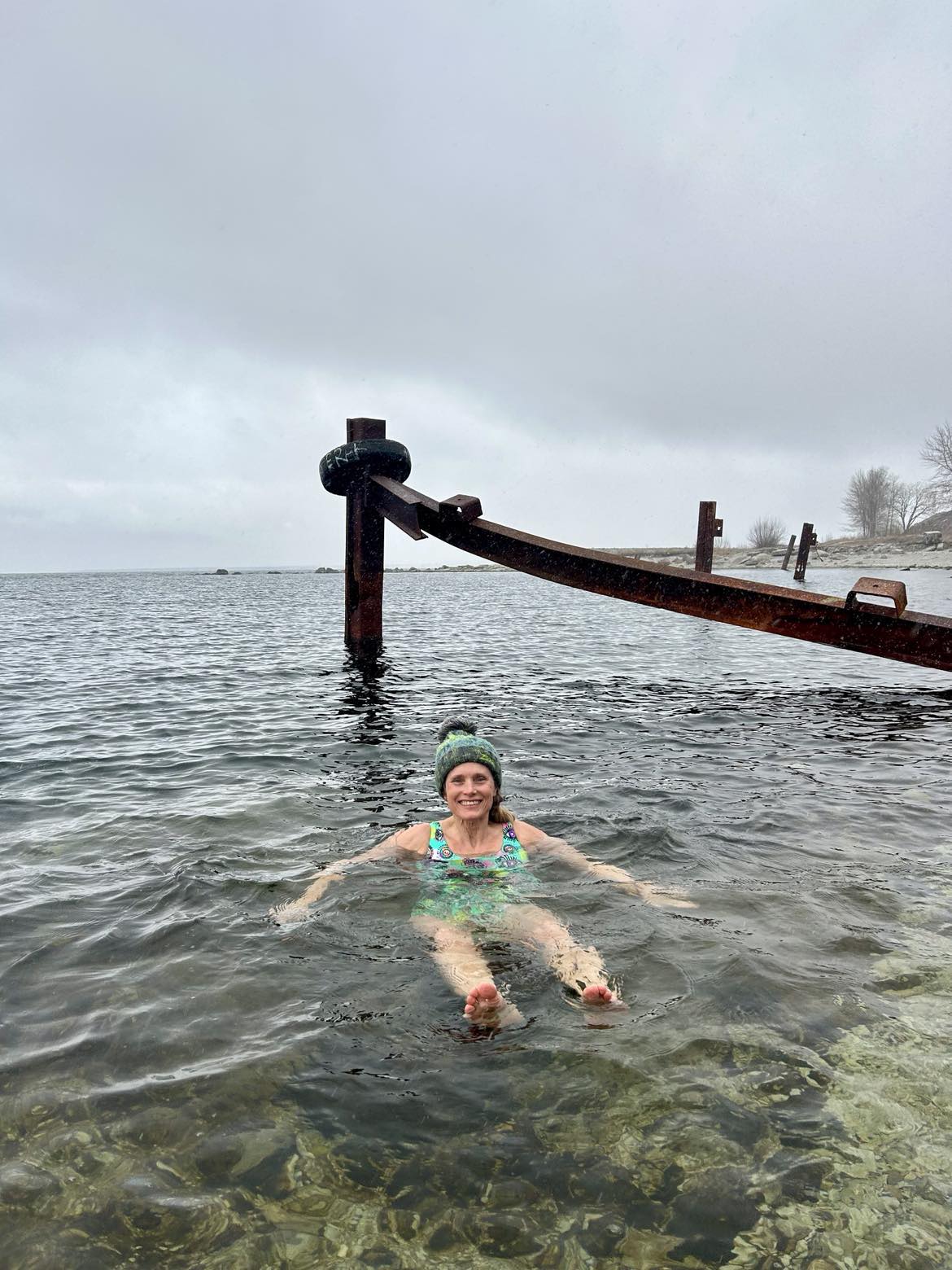 Med vanntemperatur på rett over null grader i mars er det en sann velsignelse å ha varm sauna i umiddelbar nærhet etter svømmeturen.