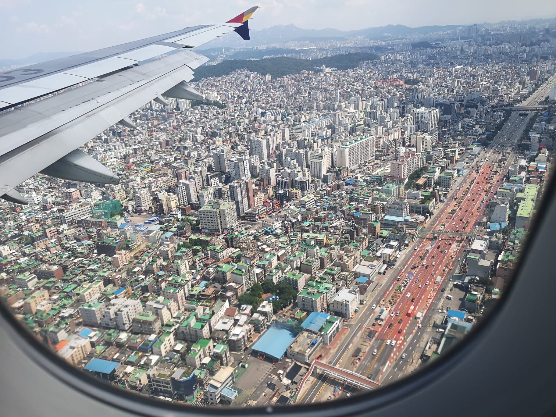 MILLIONBY: Sør-Korea var tidlig ute med Korona-smitte. Nå har antall smittede gått ned . Bildet er tatt før landing i Seouls byflyplass.
