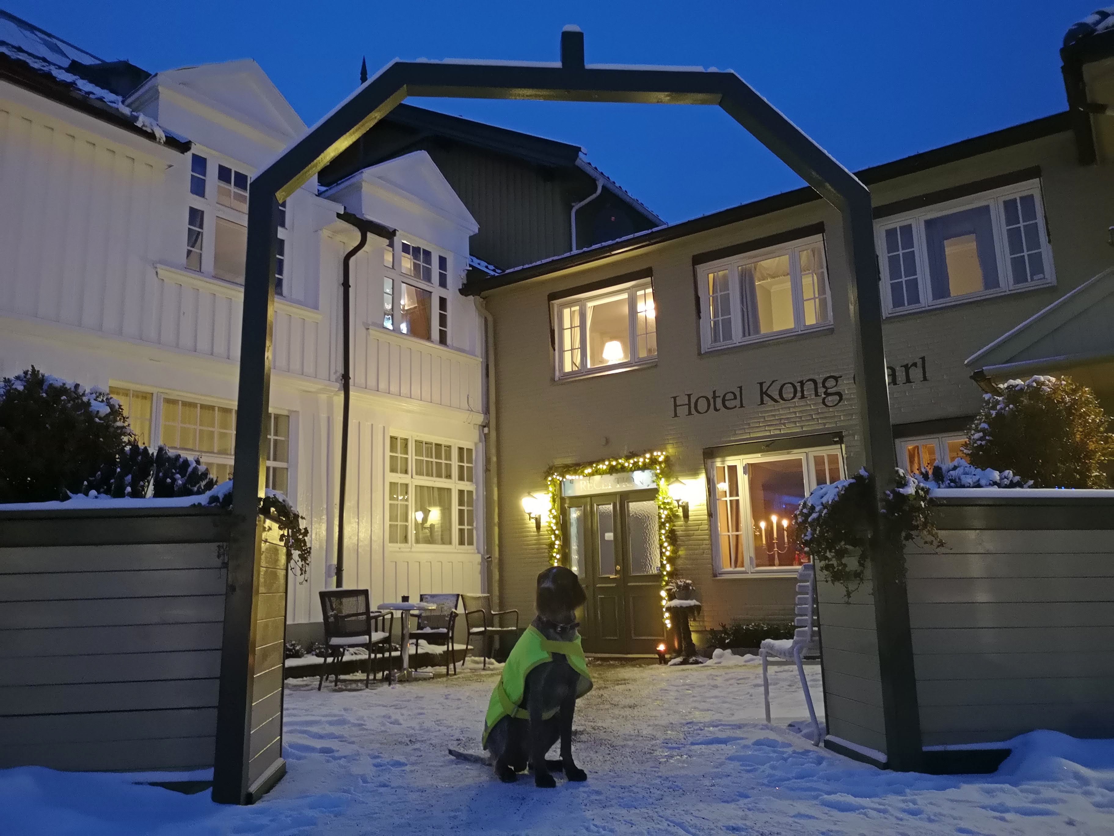 Ettersom mine foreldre begynner å bli godt voksne, har vi ved de siste overnattingsbesøkene overnattet på nærmeste hotell. Kong Carl hotell ligger kun et steinkast unna, og tar like gjerne imot firbente som tobente gjester.