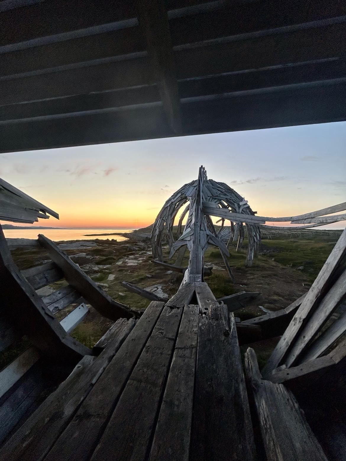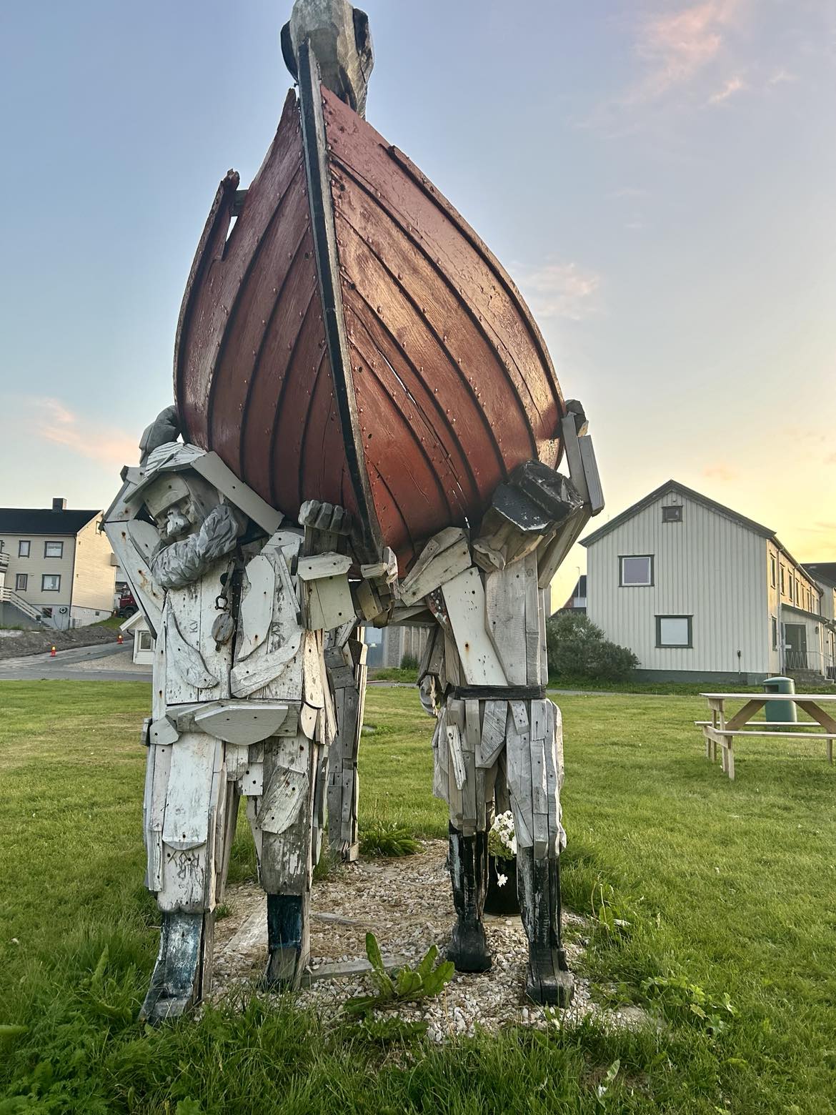 Skulpturen ble bygget i 2016 av kunstnere fra Arkhangelsk, og er en hyllest til det arktiske, med fokus på myter, skip, hval, mennesker på flyttefot og ikke minst den rå naturen og havet her oppe.