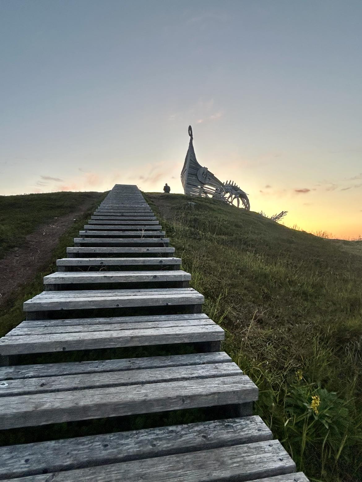 MAJESTETISK: Skulpturen Drakkar-Leviathan i augustsolnedgang. Skulpturen vitner om det også har vært vennskap med den store naboen i øst.