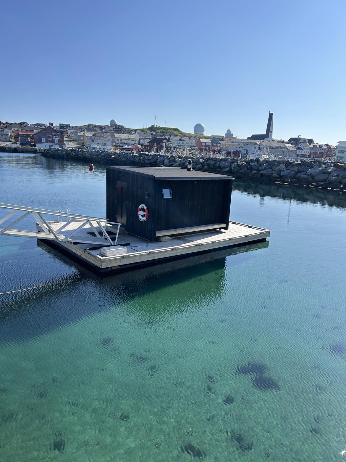 En ting som ikke er unikt med Vardø den flytende badstuen rett utenfor turistkontoret.