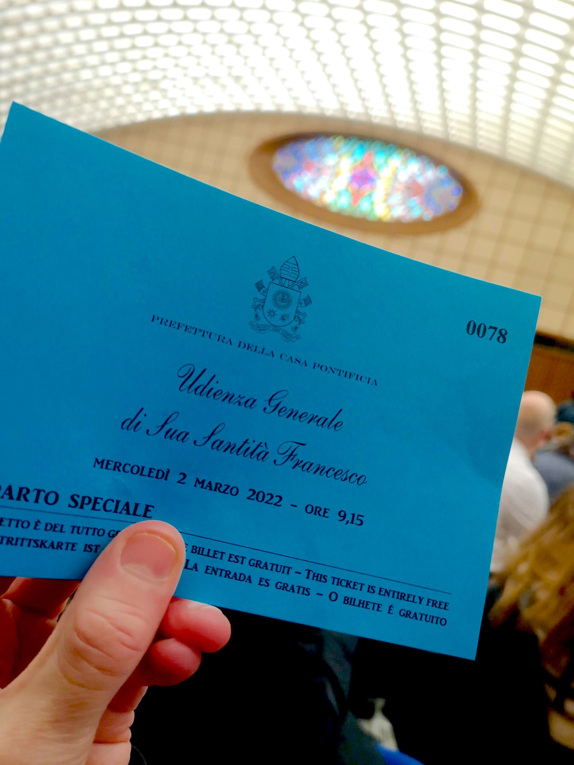 Det er tidlig morgen og tidlig vår. Vinden blåser kalt over Petersplassen og Vatikanstaten, selv om sola skinner fra klar himmel. Det er 2022 og det er korona, der jeg står med en blå papirbillett i hånden. På den står det at jeg og studiegruppen min fra universitet i Sørøst-Norge snart skal på audiens hos selveste paven.