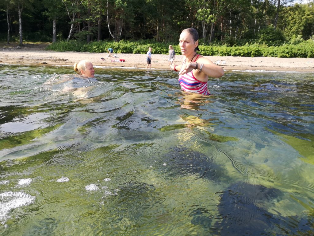 - Bading på Tofte i april.