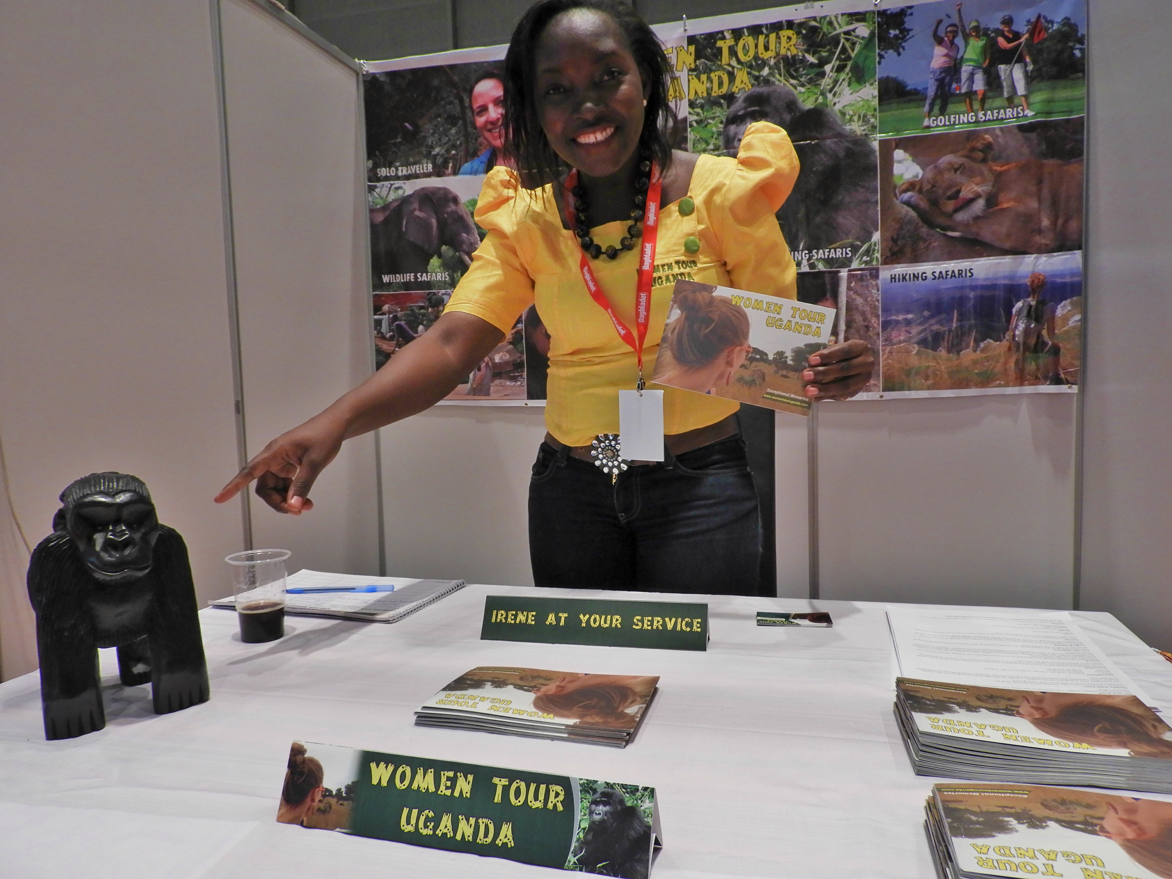 –Vi oppfordrer damer til å ta en pause fra dagliglivet og dra på goriallasafari sammen med andre damer, sier Irene Nalwoga fra Women Tour Uganda. Hun besøker den norske Reiselivsmessen for første gang.