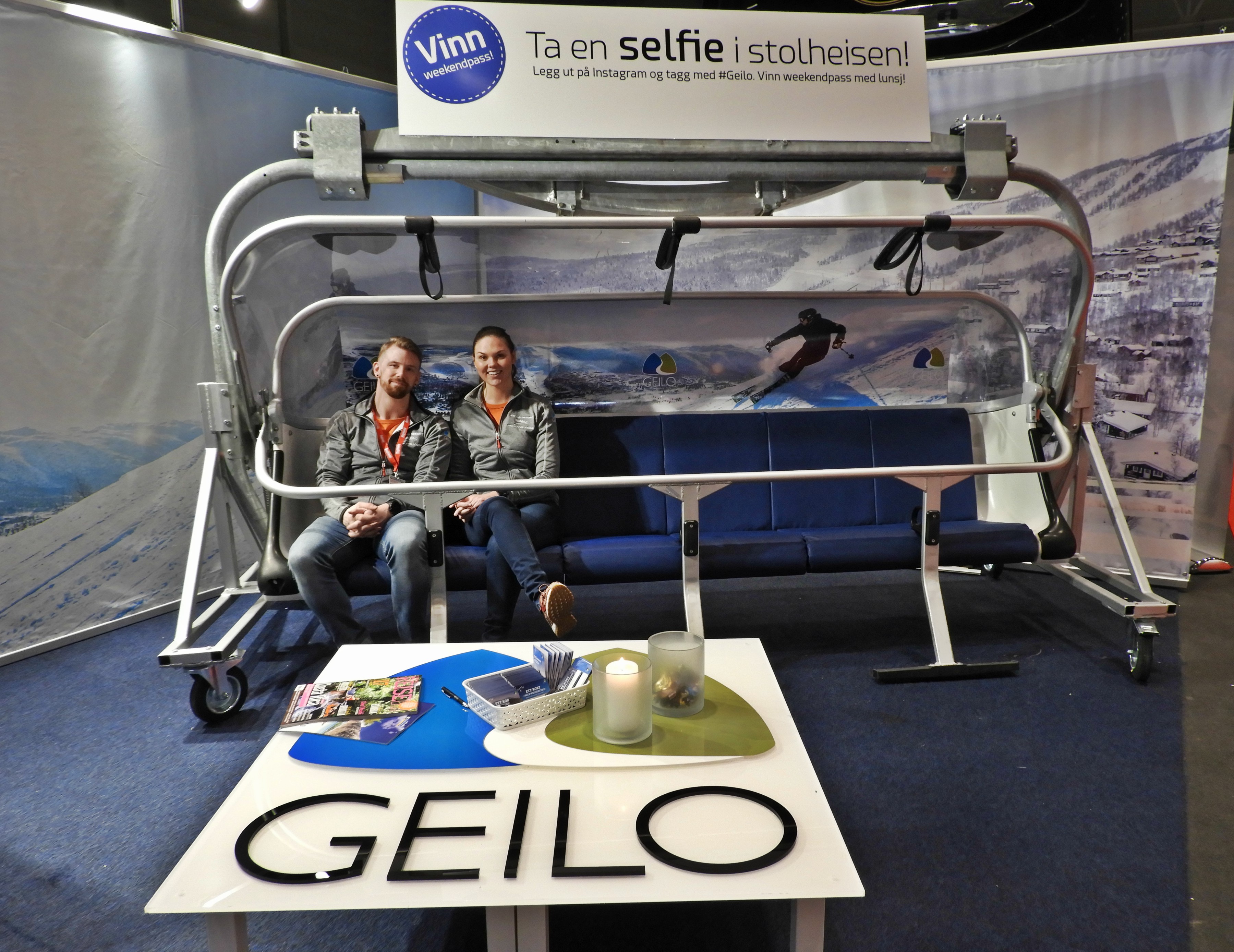 Hundeelskere bør ta turen til Langedrag-standen og hilse på de to pelskledde firbente utstillerne, mens VisitHarstad lokker med opplever 365 dager i året til alle tider av døgnet. Er du ute av trening og vil øve på å sitte i en stolheis, kan du teste «heisen» på Geilo-standen.