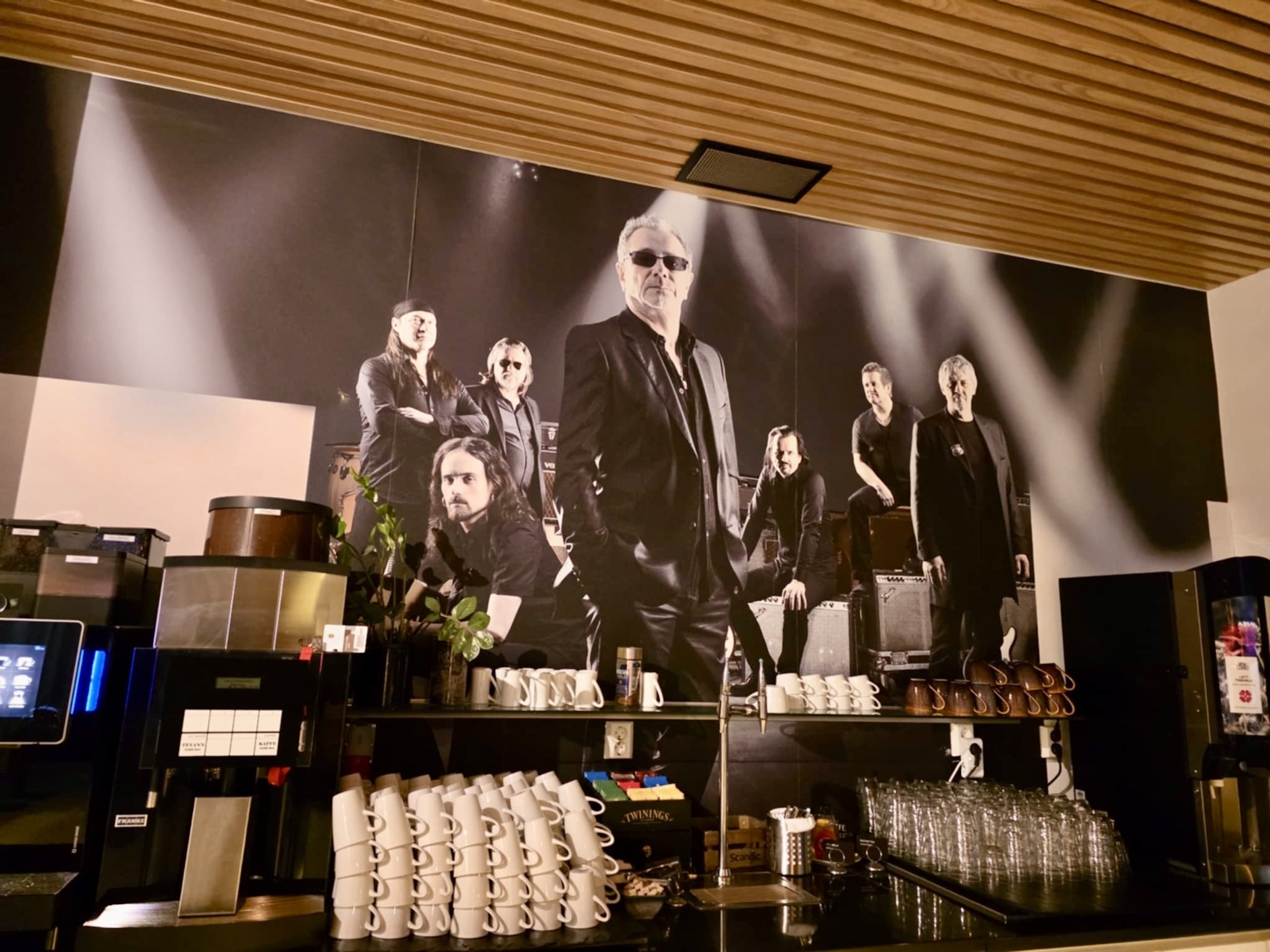 Det glinsende sølvbokstavene med Rock Music på veggen inviterer til både selfie og familiefoto.