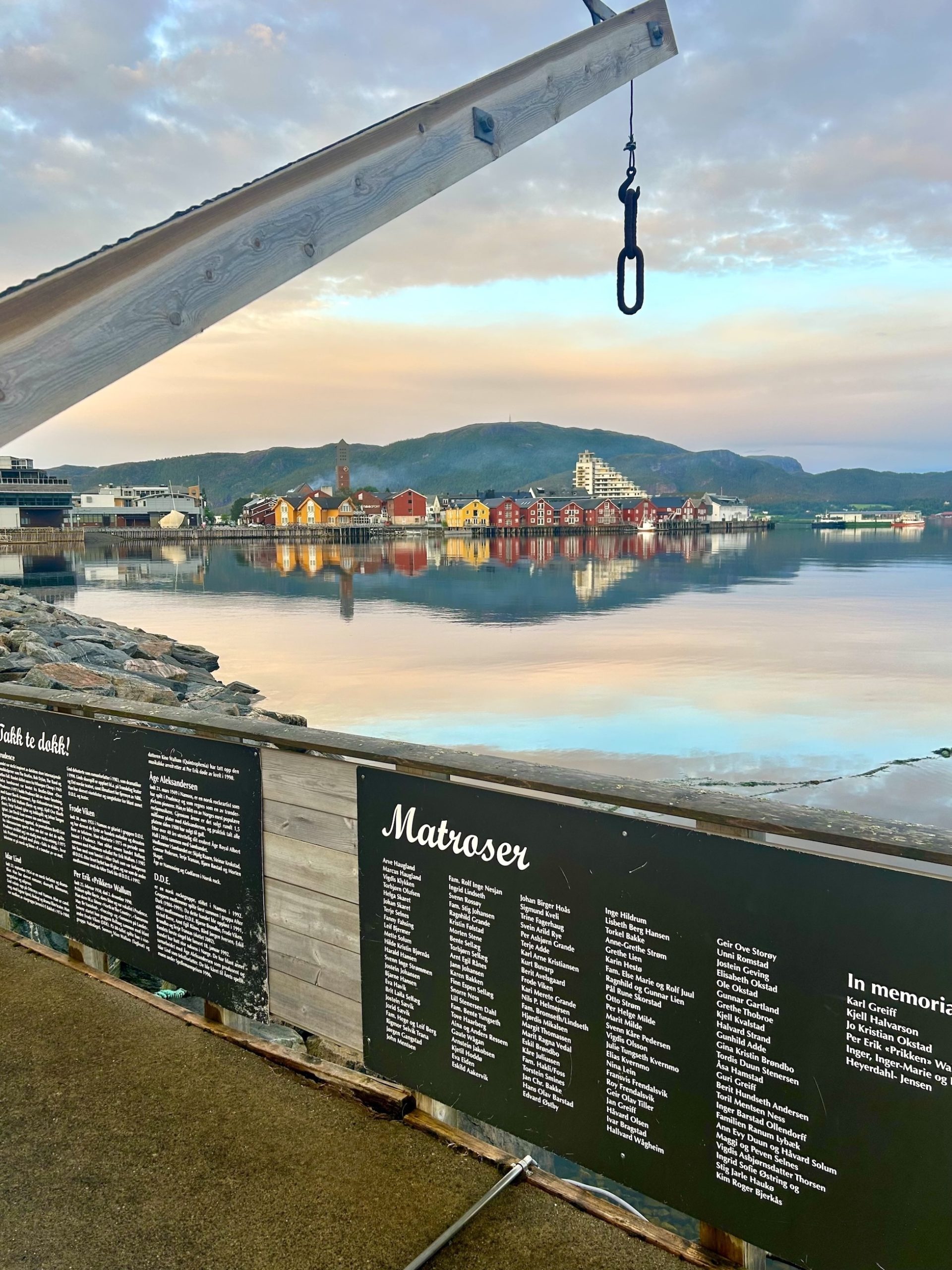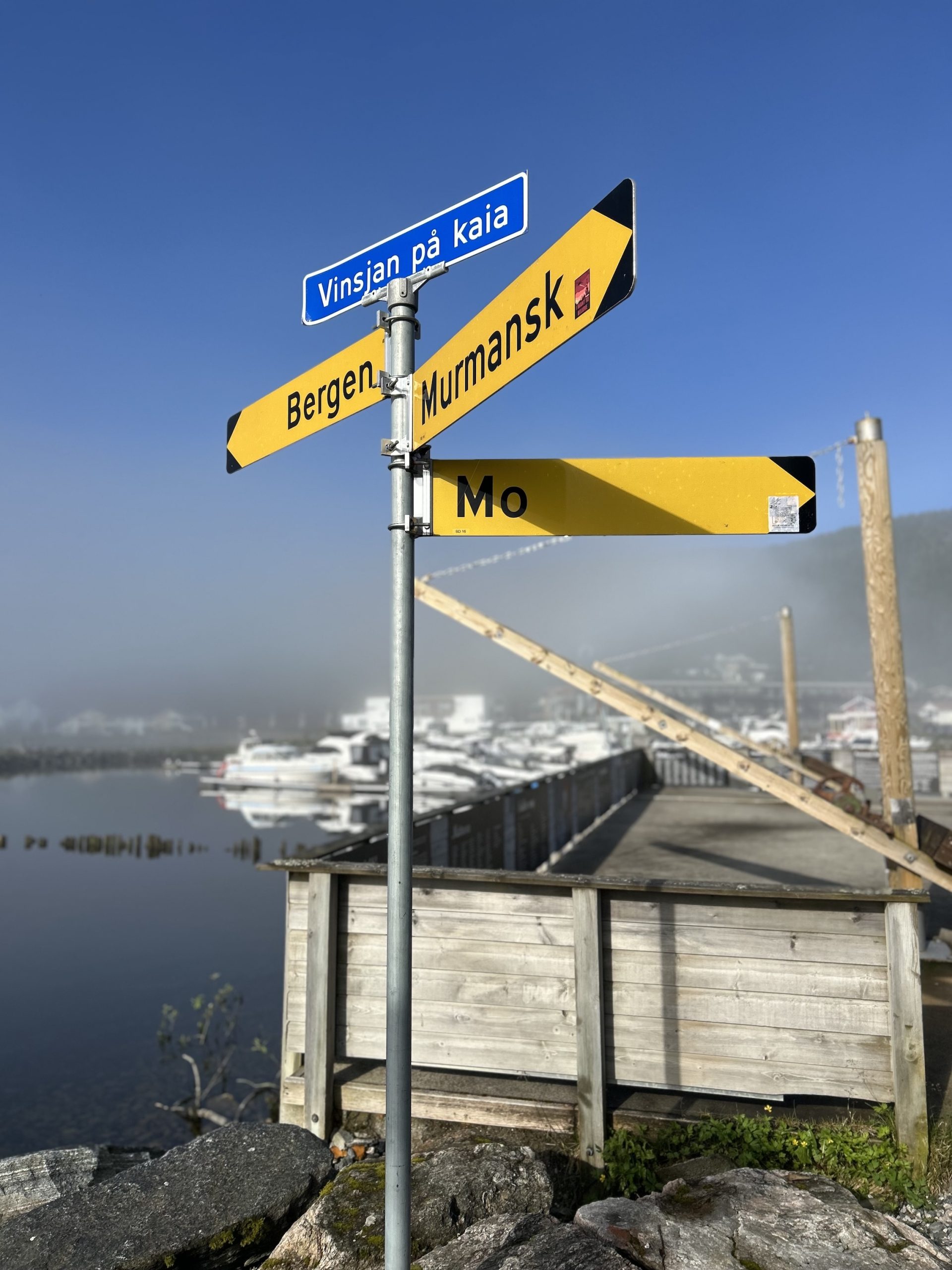 “Bergen, Murmansk, Mo”….?? Det er noe kjent med de tre bynavnene på skiltet bryggekanten lengst bort på promenaden.