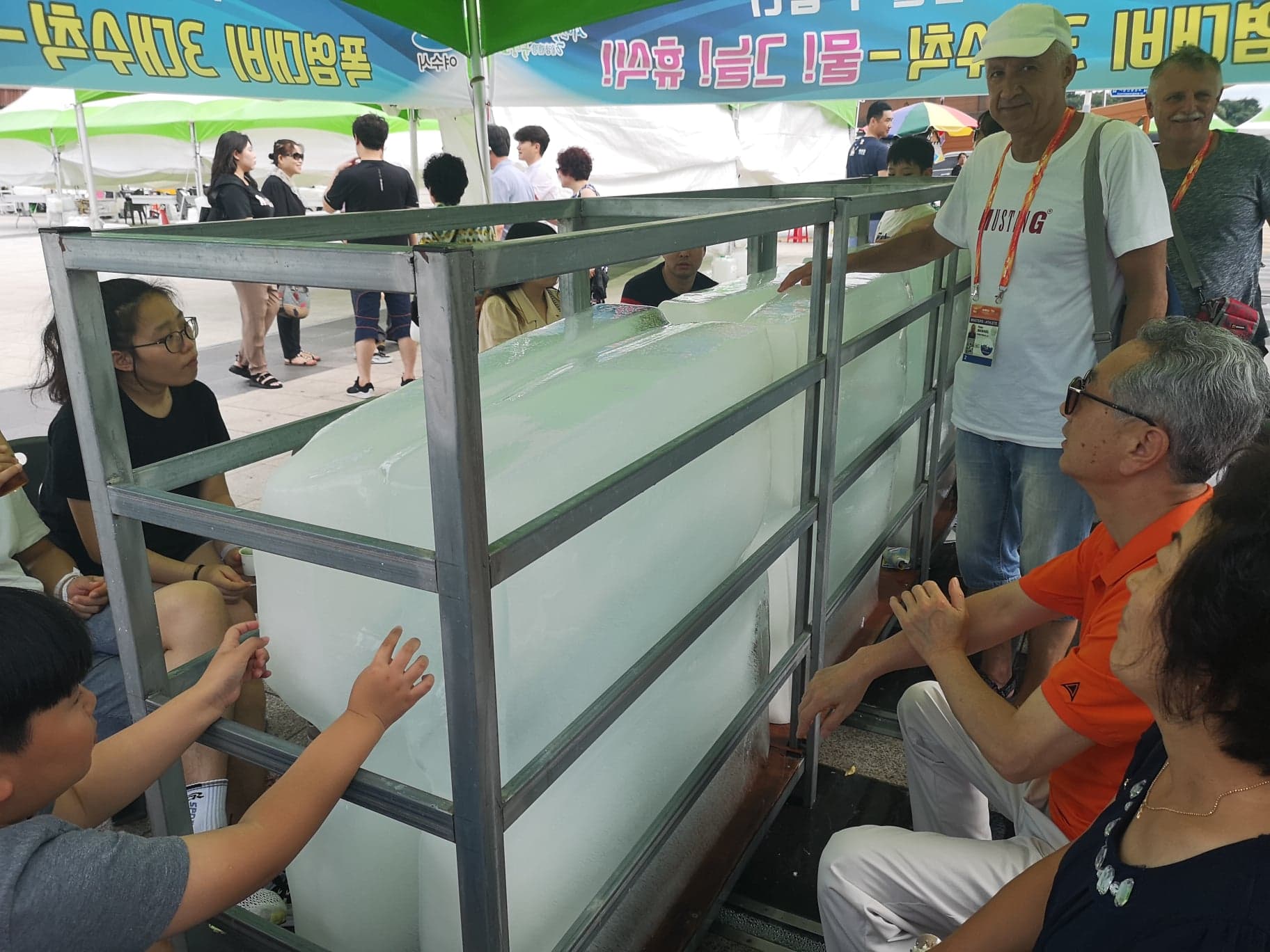 IS-KALDT: I Yeosu i Sør-Korea kjølte folk seg ned på en offentlig isklump på torget. Ganske eksotisk for oss!