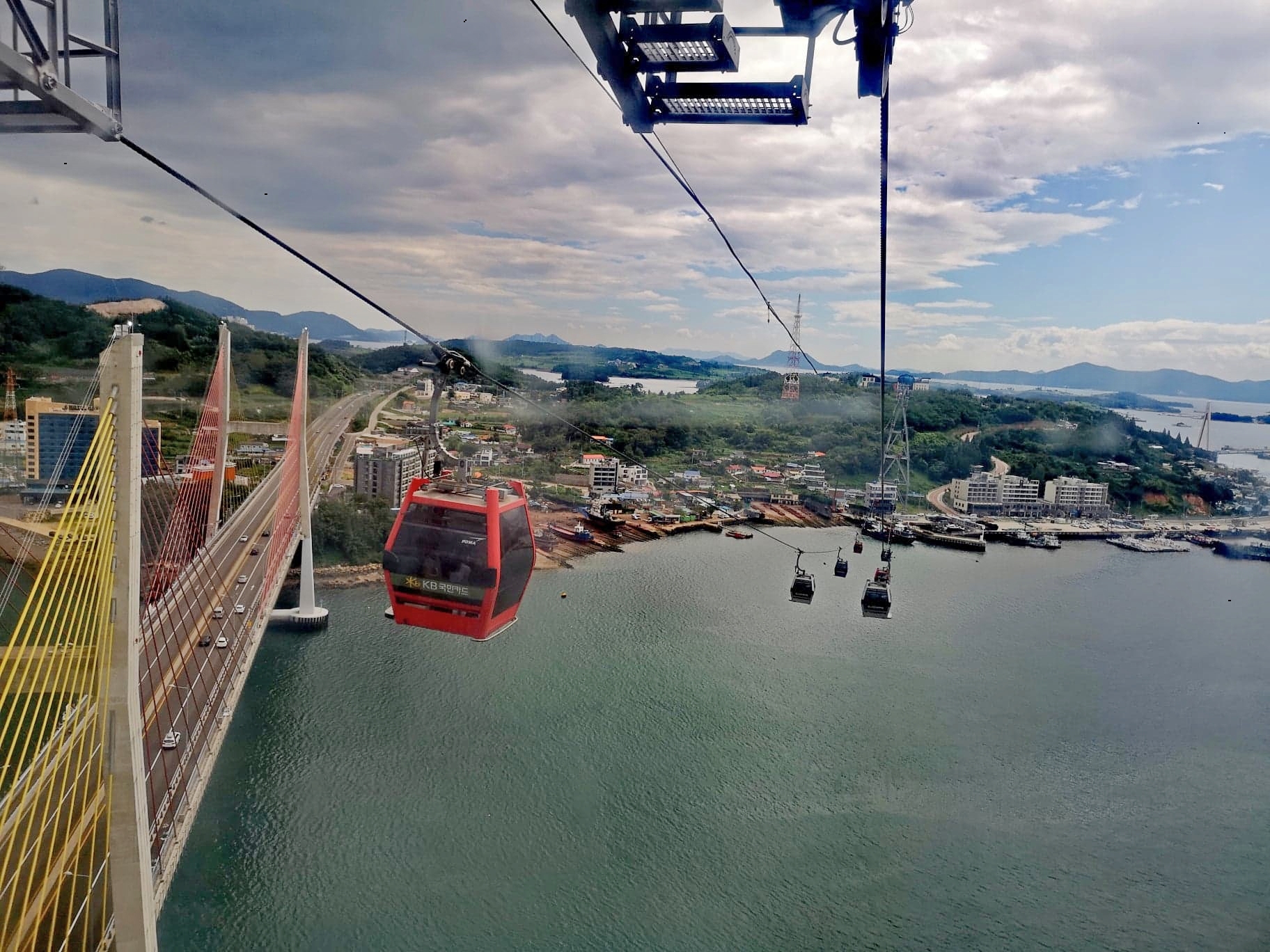 Det er enkelt og effektivt å ta tog og buss i Sør-Korea, og drøye fire timers reise sørover fra hovedstaden bringer oss til kystbyen Yeosu. Her helt, syd i landet, er det kysten, sjømaten og den store kabelbanen som er hovedattraksjonene. Kabelbanen går fra Jasan Park , over Dolsan bor til øya med det samme navnet, Dolsan Park.