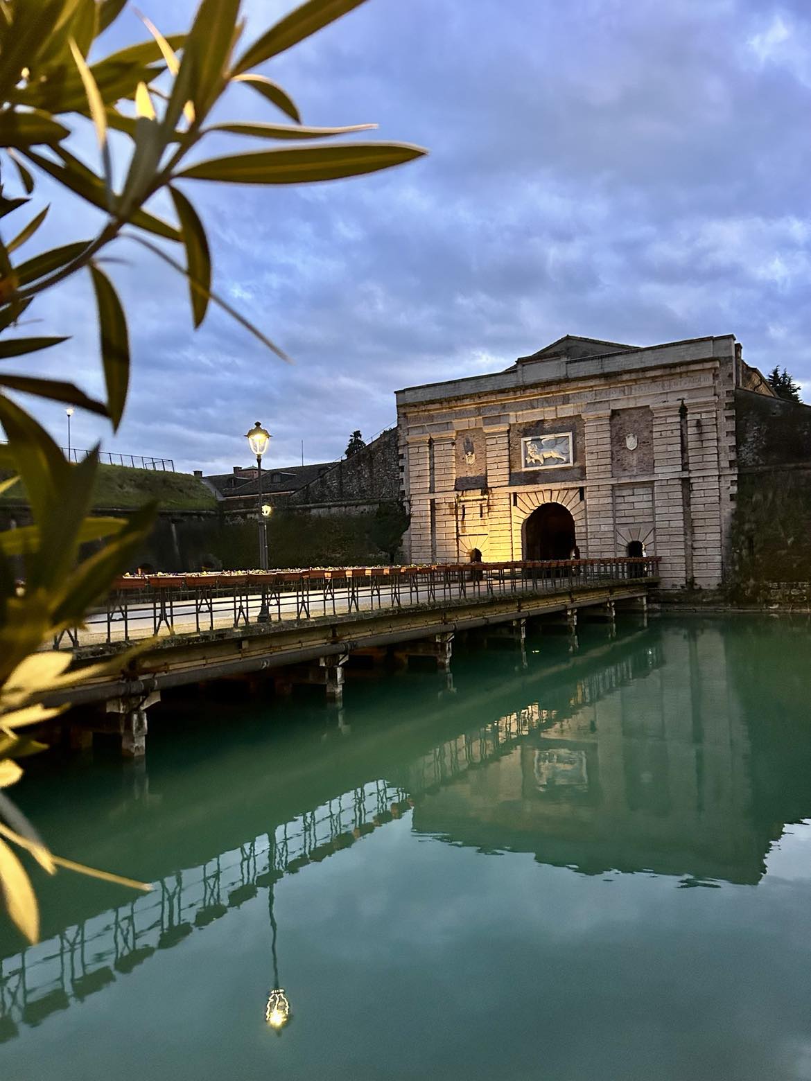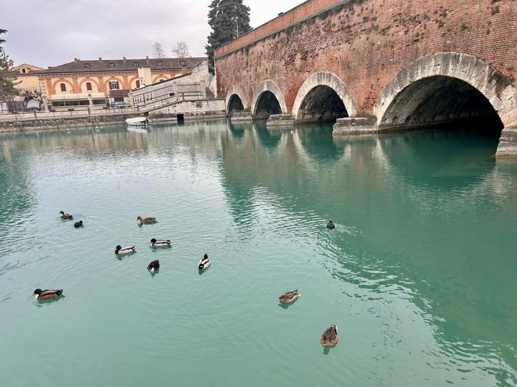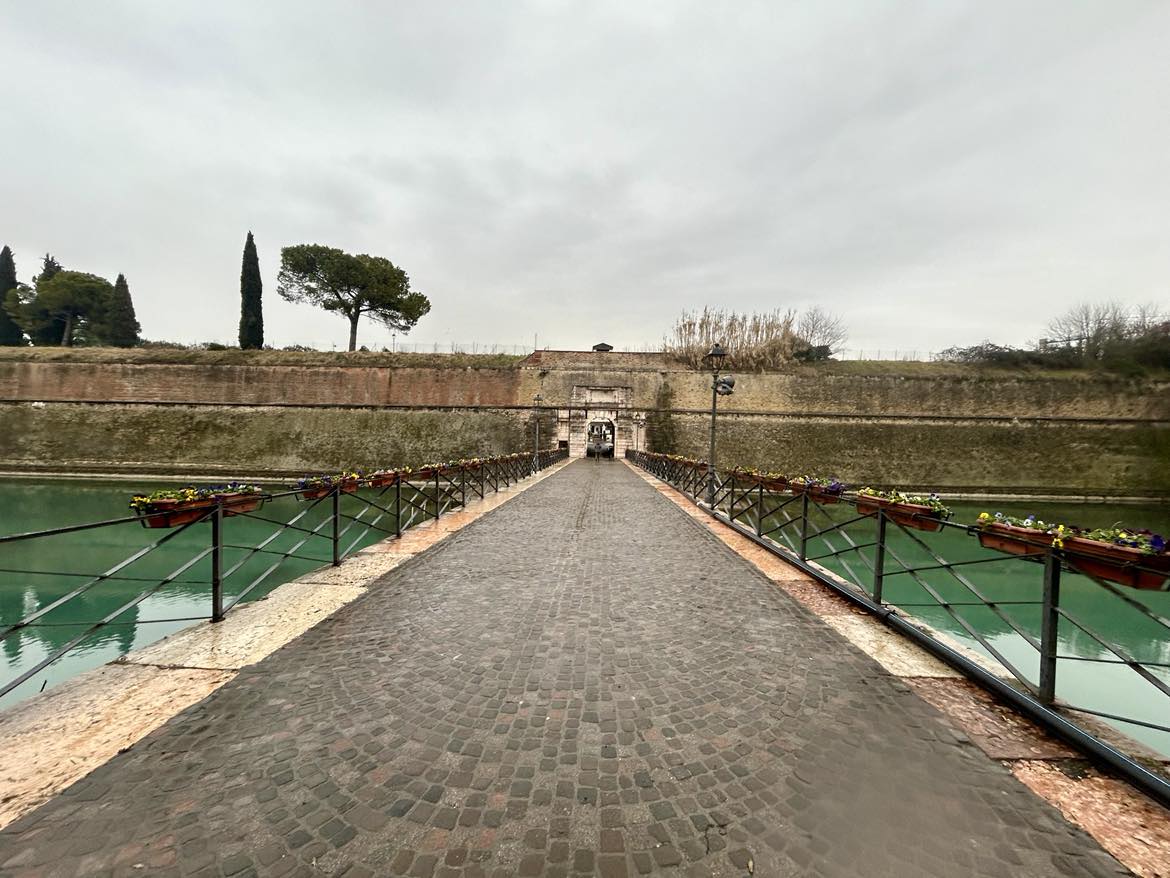 Hovedinngangen til byen, Porta Verona, er fra midten av 1500-tallet, og ligger kun noen hundre meter fra hotellet mitt. Akkurat nå er glad for å være her på en kjølig vinterdag. Det føles som et privilegium å gå gjennom den kraftige festningsporten uten andre mennesker. På den andre siden av porten forsetter middalalderbroen over elven Mincio, som forbinder sentrum med fastlandet.