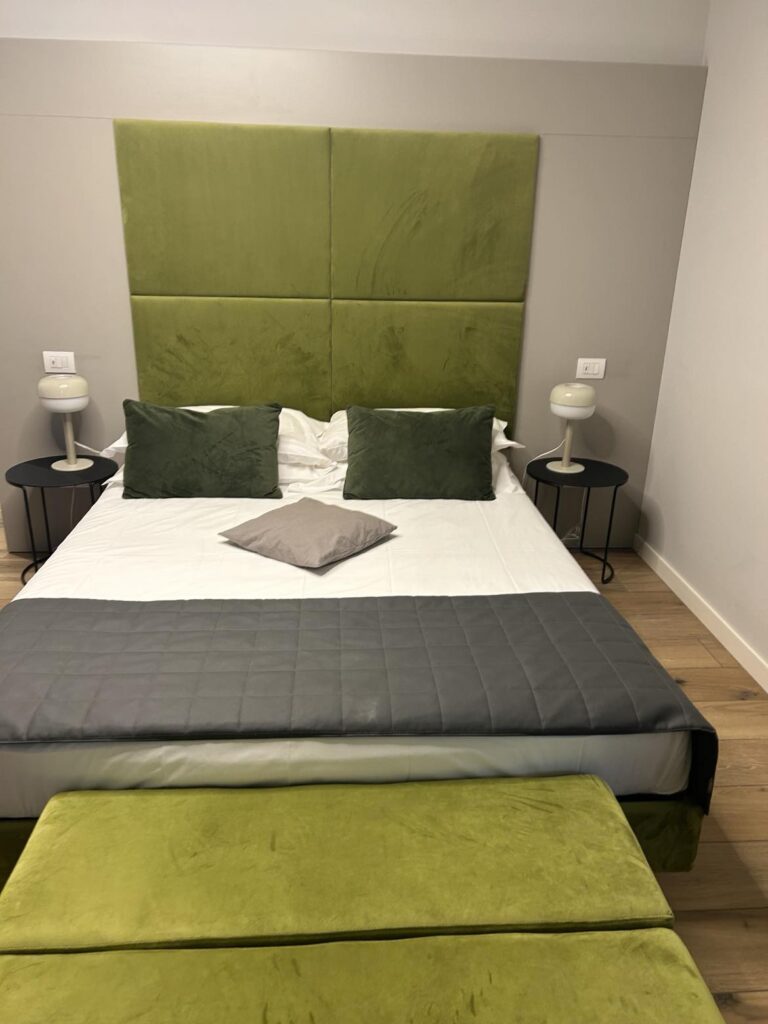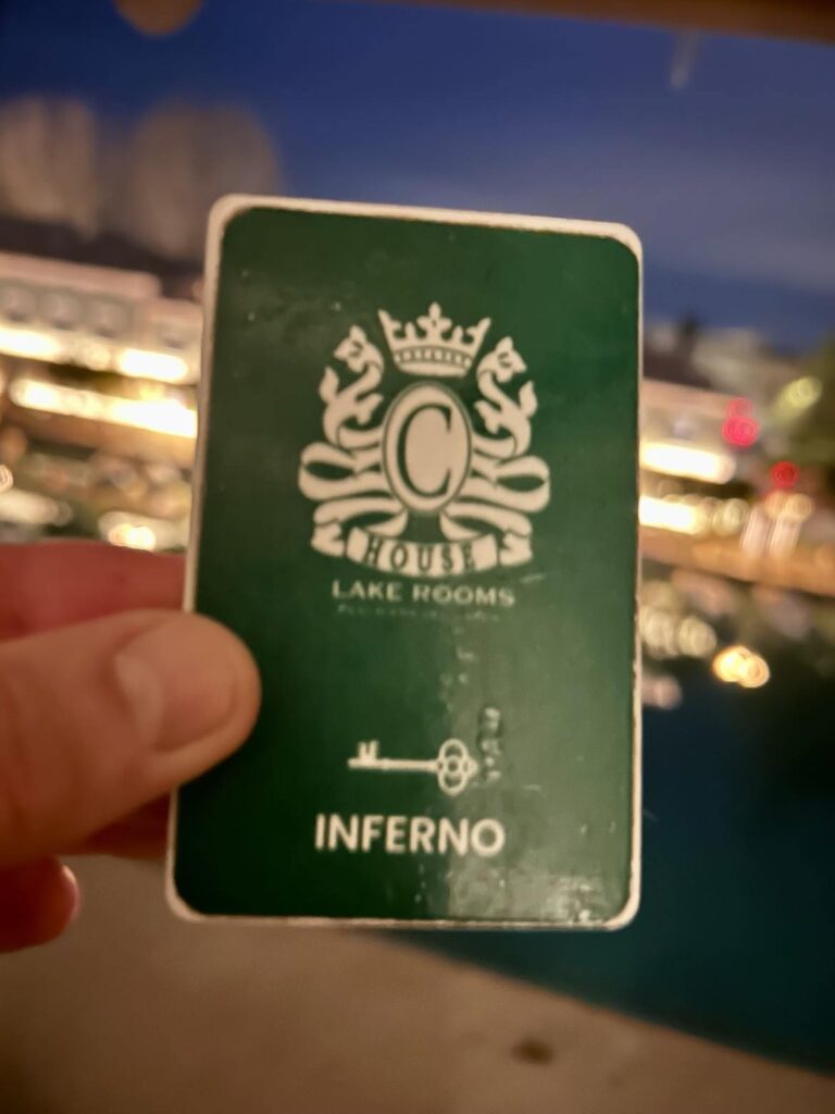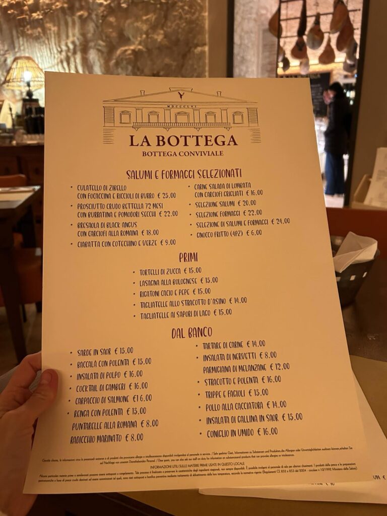 Jeg booket rom i all hast natten før på idylliske C House Lake, et lite hotell med kafe på bakkenivå og fem rom i femte etasje, som var toppetasjen. Alle de fem rommene på toppen viser seg å ha navn, og det er med en viss spenning jeg åpner døren til mitt krypinn for natten; “Inferno”. Rommet er alt annet enn navnet tilsier, med nydelig grønt innredet soverom og bad. For 88 euro har jeg sikret meg en av byens beste utsikter; med kanalen og 1500-tallsbroen Ponte dei Voltoni rett utenfor vinduet. Et perfekt utgangspunkt for å nyte morgenkaffen som er inkludert i romprisen.