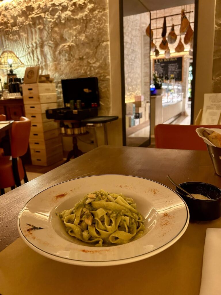 For min del blir det pasta med lokal fisk og et stort glass Valpolicella. Jammen klarer ikke servitøren å friste meg med dessert også. Det skjer sjelden. Men så er dessertene i dette landet også sjeldent gode.