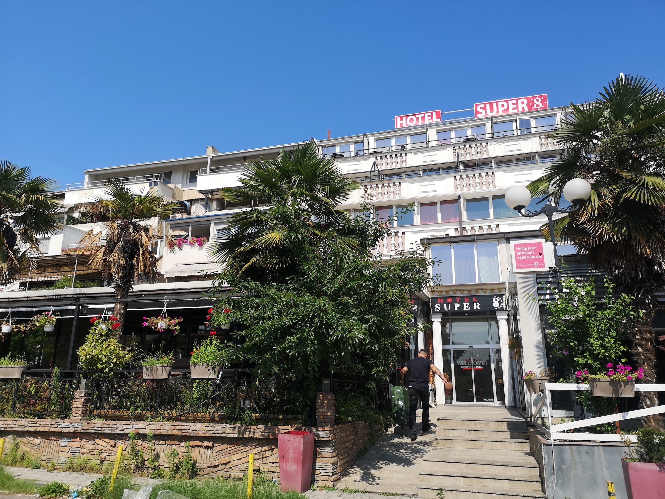 Fra balkongen i toppetasjen på hotellet med det klingende navnet Super8, har vi storslått utsikt til gamlebyen The Old Bazaar. Den gamle ottomanske bebyggelsen hviler under festningen Skopje Kale fra det 6.århundret. Til venstre har vi utsikt mot Tusenårskorset, som ligger på toppen av en grønn åskam. Den 66 meter høye konstruksjonen ruver faktisk hele tusen meter over havet. Korset ble bygget i forbindelse med 2000-årsjubileumet for innføringen av kristendommen i Makedonia.