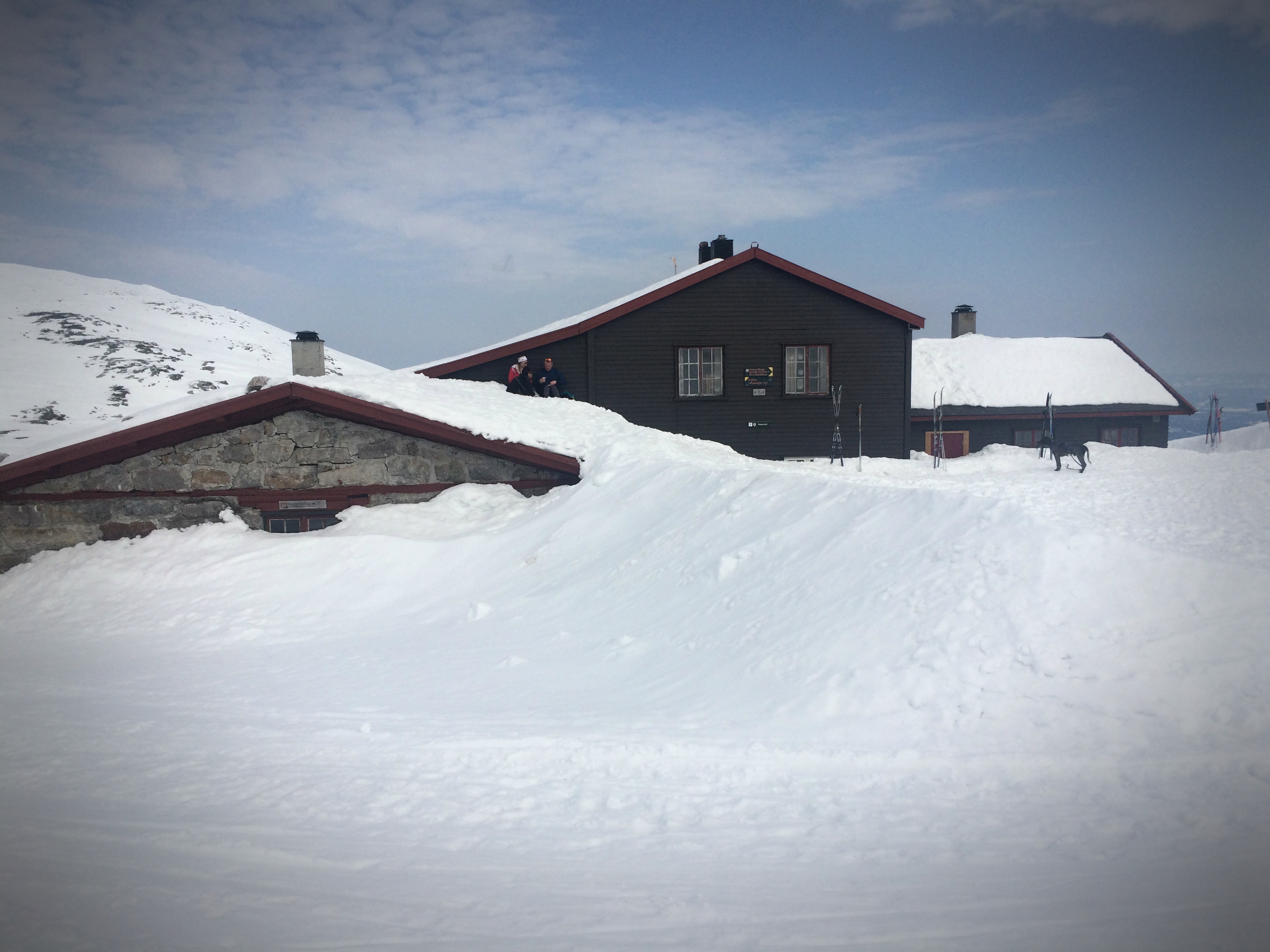 Sammen men fire-fem andre er vi de siste turistene på hytta denne vinteren. Det hadde vært kipt og kommet et kvarter for sent, selv om det er varmt i sola og turen i seg selv var målet.