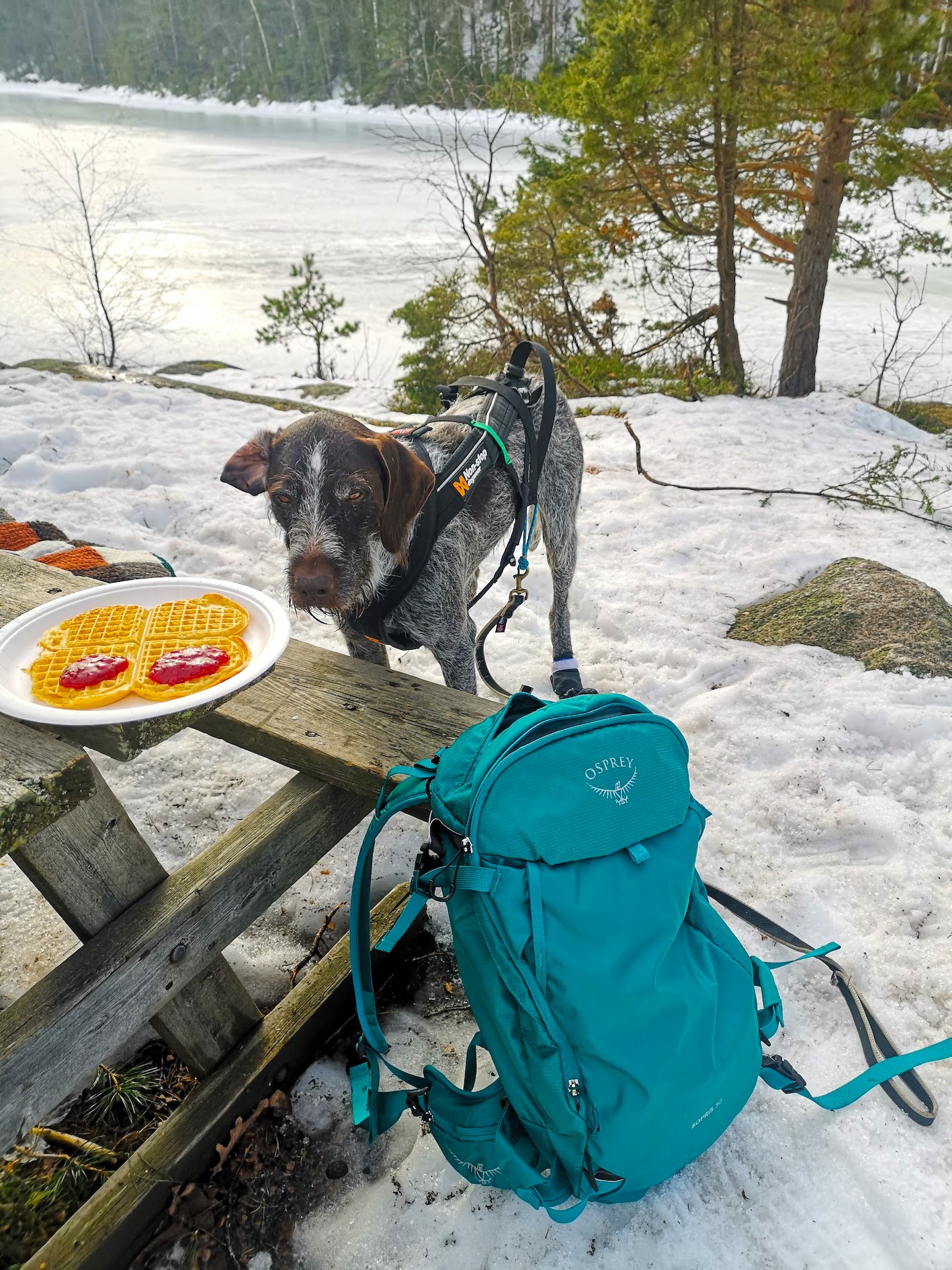 - Sekk, hund og vaffel. Alt man trenger på tur.