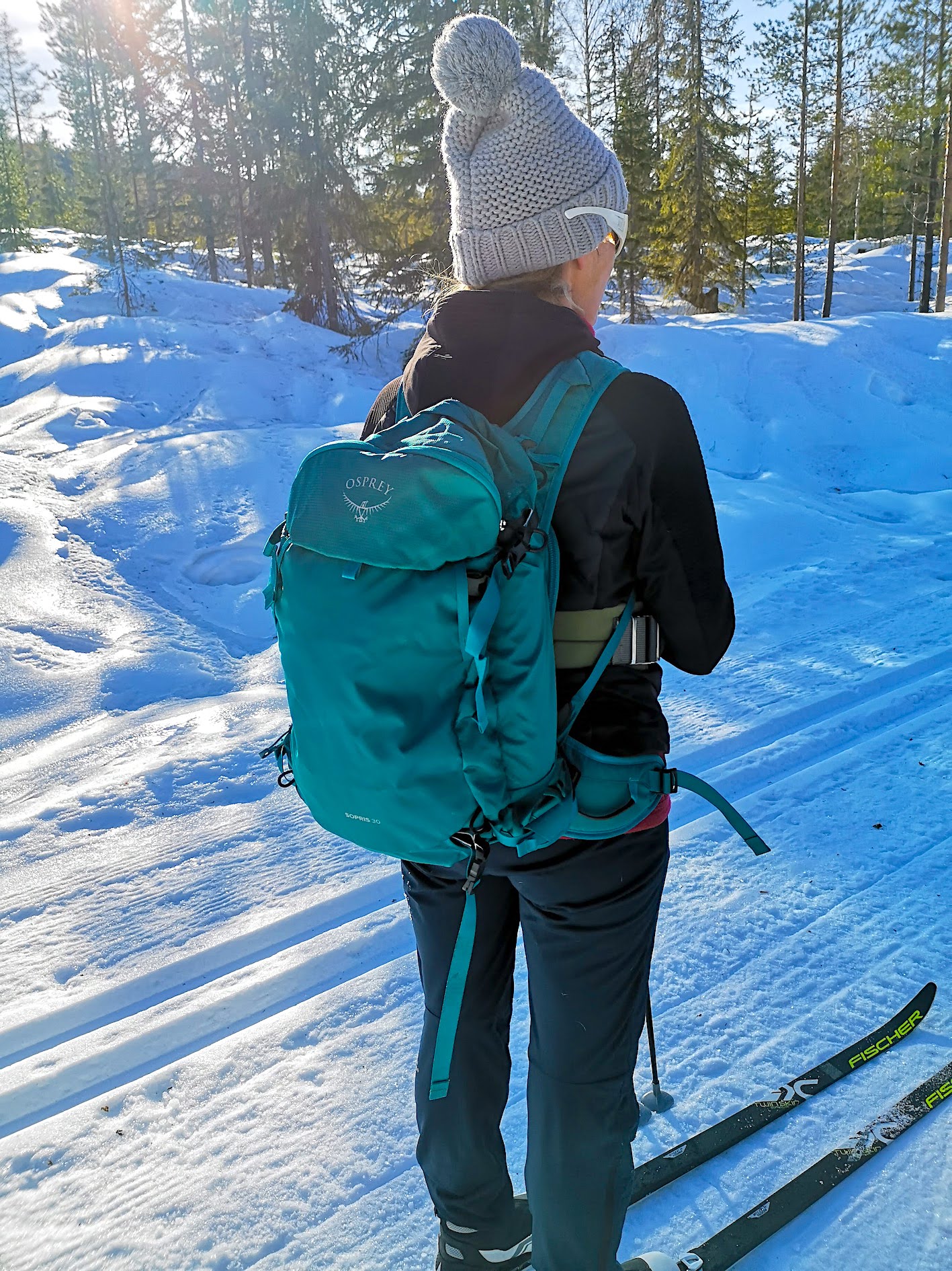 Sopris 30 damemodell er en veldig lett tursekk som sitter godt på ryggen og rundt livet. Med egenvekt på kun 1,1 kilo, kjenner jeg knapt at jeg har en sekk på ryggen.