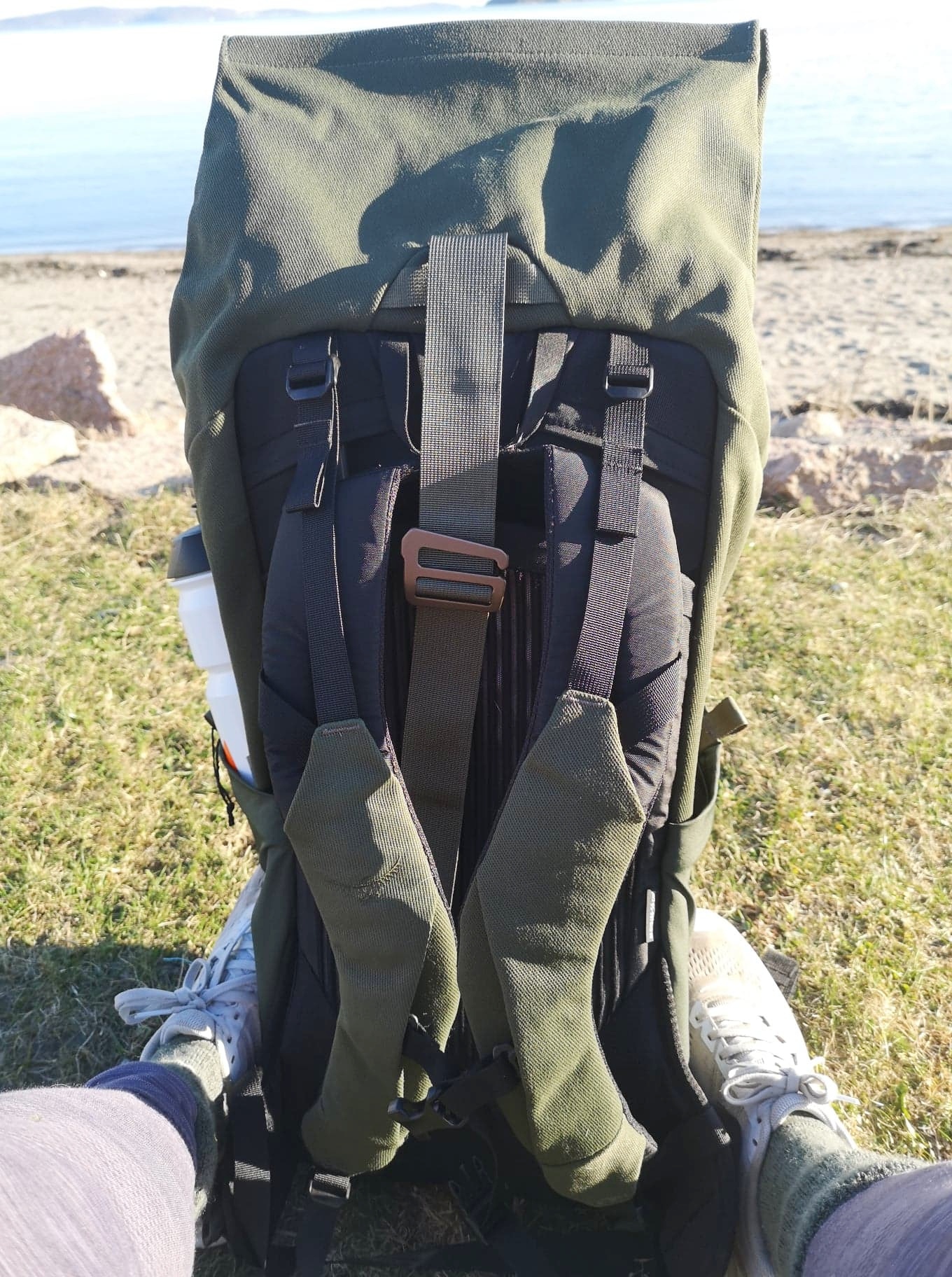 Sekken er stor nok til å brukes til flere dager i fjellet hvis man bruker hele rommet. Bæresystemet er behagelig og innehar alle de funksjonene jeg trenger hvis jeg skal tilbringe noen dager på tur i fjellet, skogen eller skjærgården.