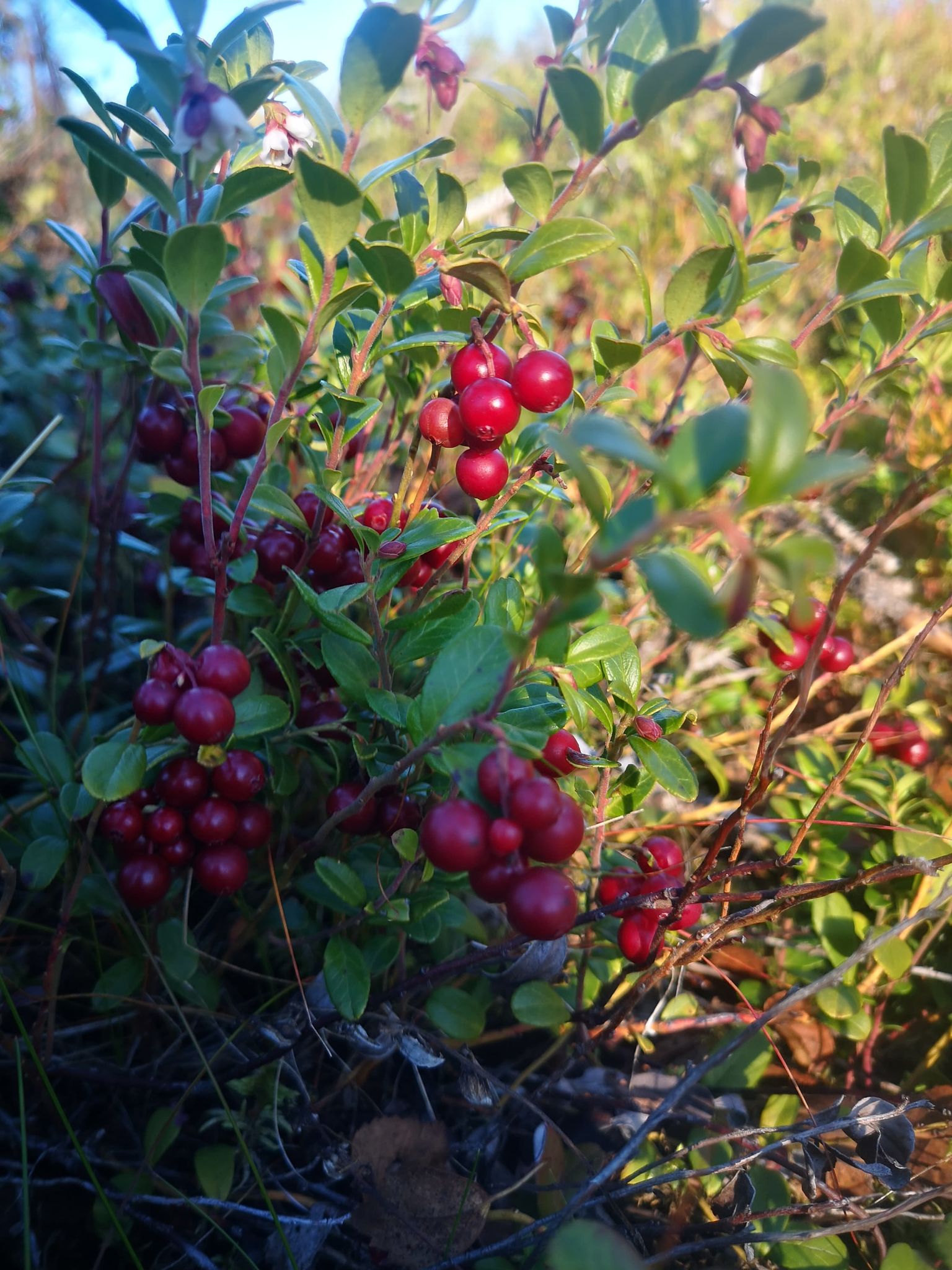 Enkelte av blåmerkene langs stien til Gyrihaugen var litt vanskelig å få øye på, og et sted gikk vi feil ettersom blåmerket på treet ikke var synlig fra vår retning. Vi kom oss imidlertid tilbake på rett sti etter å ha sjekket Ut.no sitt interaktive kart. Den lille omveien ga forøvrig en uventet bonus: Jeg har aldri sett så store og smakt så søte og gode tyttebær.