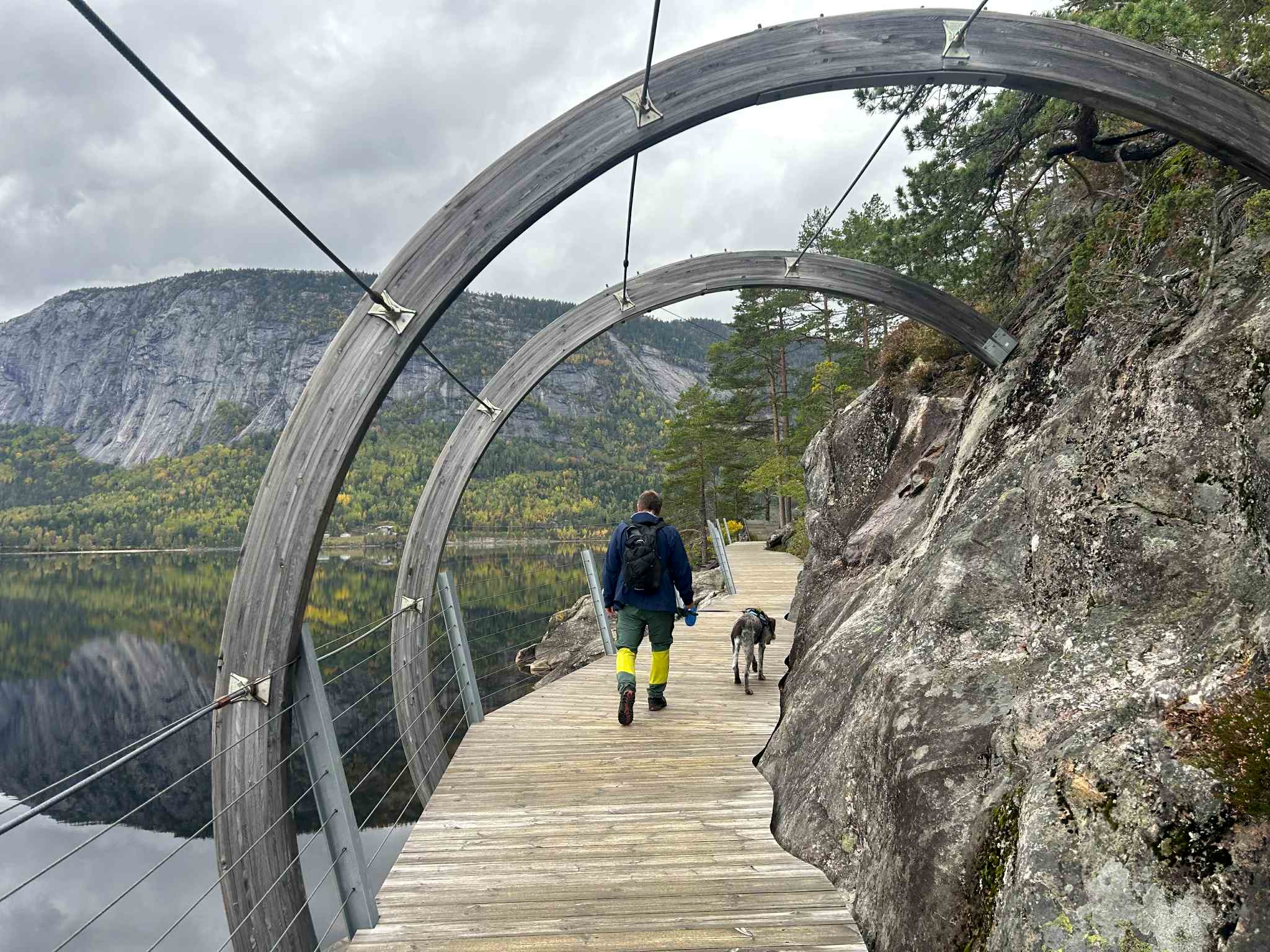 SLYNGER SEG: Tretoppvegen i Fyresdal er Norges første i sitt slag. Den er en kilometer lang og tar deg opp til 15 meter over bakken.