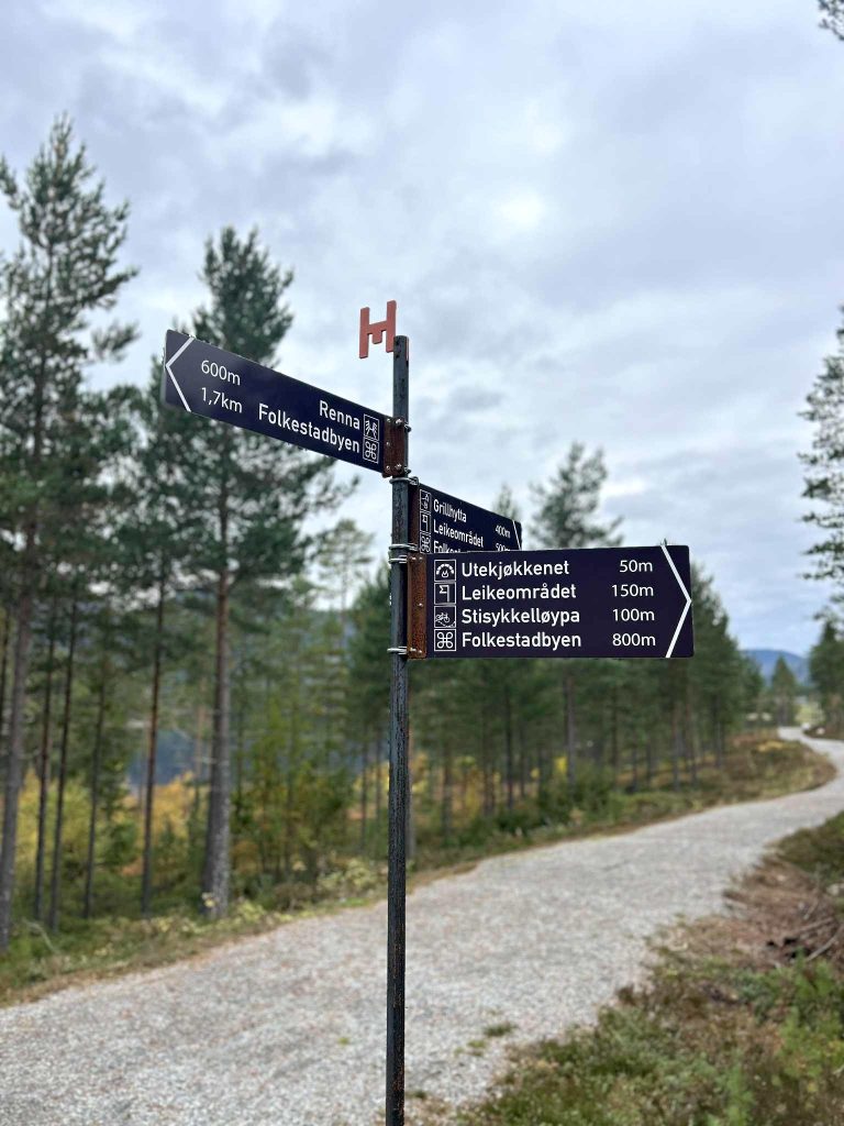 Etter en drøy kilometer kommer vi til hovedmålet; Tretoppvegen, eller Tretoppstien. Jeg har sett begge navnene, men Tretoppvegen ser ut til å være det mest brukte navnet på veien som for to år siden toppet Visit Norway´s liste over «årets heftigste reisenyheter».