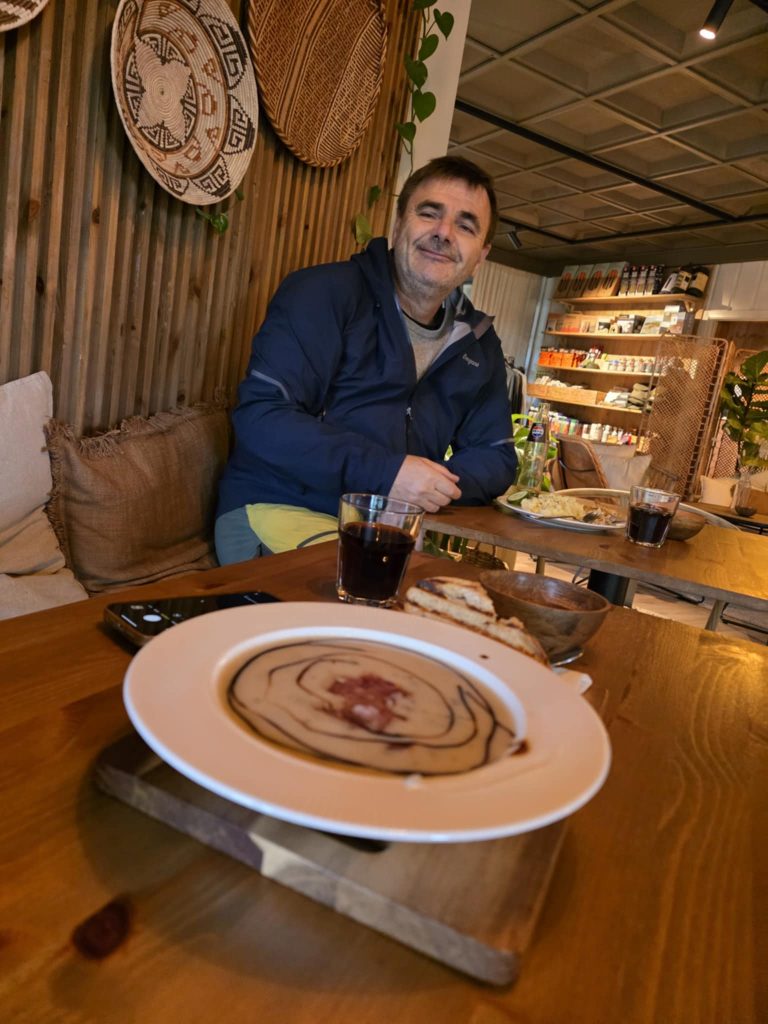 Dagsturen avsluttes på Hvelvet kafe med varm mat og drikke. Sjelden har sjampignonsuppe og varm sjokolade med krem smakt så godt som nå.